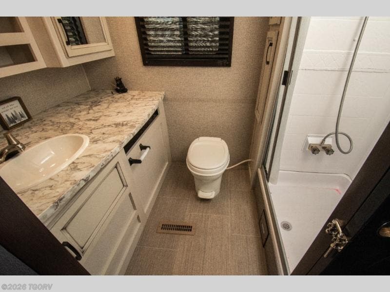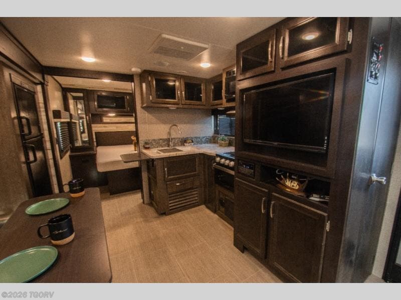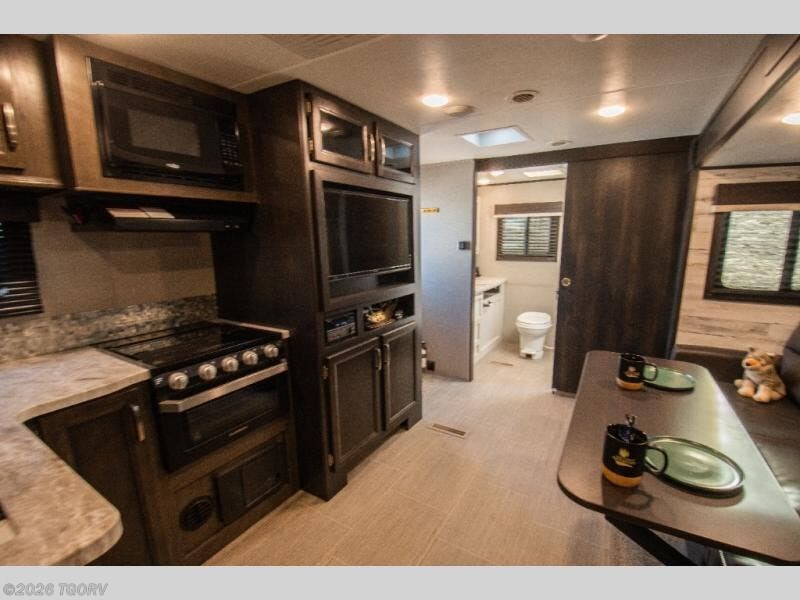 Whether you spend you day outdoors around the outside kitchen or inside around the U-shaped dinette, you'll see this travel trailer has a little something for everyone. This unit features a spacious full rear bath so you can get ready for your day just like you do at home. Fill your day with hiking, biking, or swimming, and when it's time to call it a night, the front private bedroom with a queen bed will be waiting for you. You'll find plenty of storage space, including a walk-in pantry, overhead compartments, and outside storage for all your gear both small and large!
