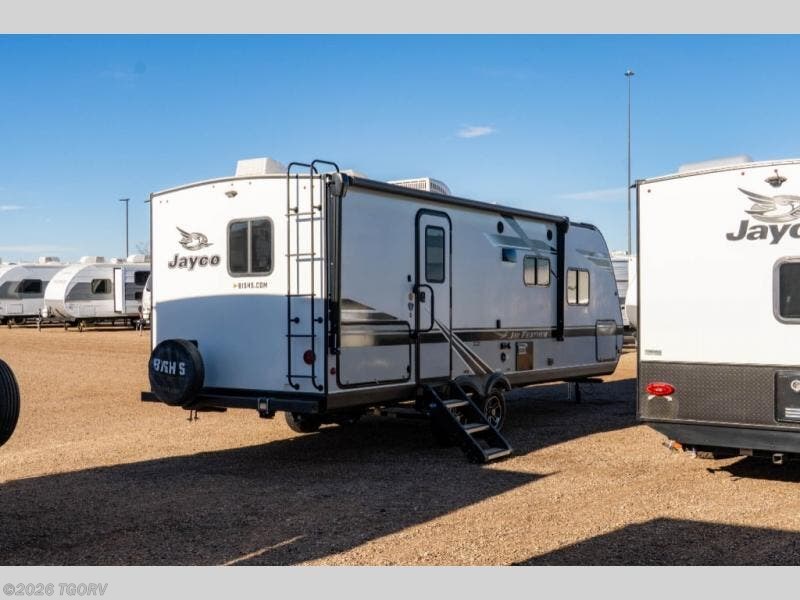 The Jayco Jay Feather travel trailers offer a front molded fiberglass cap with enhanced graphics package, JaySMART backup lighting, and more mandatory features from the Sport package. Stronghold VBL vacuum-boned, laminated floor, side, rear and slide room walls are included on the American-made Norco frame with integrated A-frame. Inside you will find smoked glass decorative inserts in select overhead cabinets, ball-bearing drawer glides, a Jayco exclusive mattress with bedspread on select models, and more! Choose your favorite floorplan, and start a new adventure!