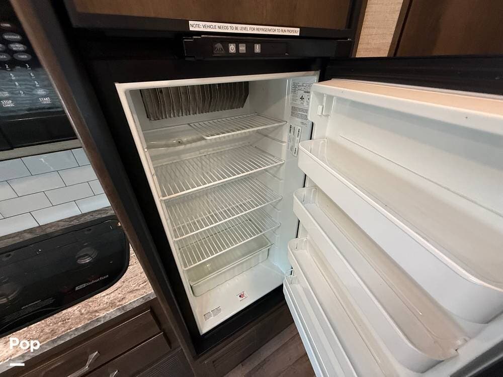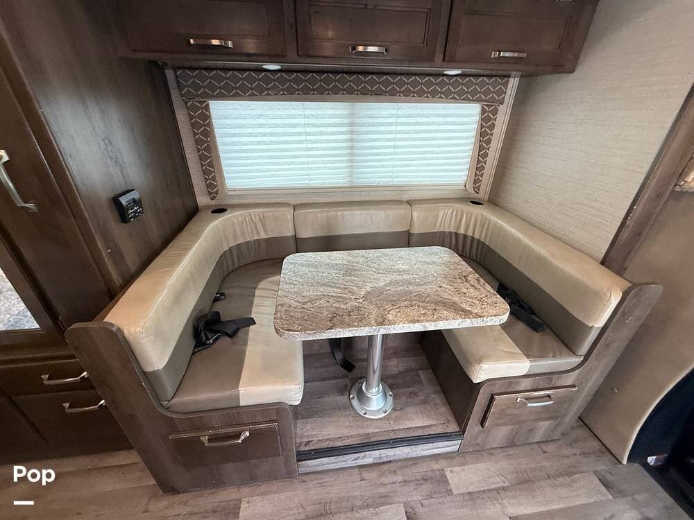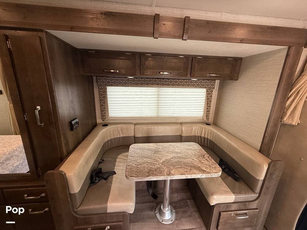 Inside, this RV feels spacious and inviting thanks to its smart layout and full-wall slide. The living area features a comfortable dinette, overhead bunk, and entertainment center -- perfect for relaxing after a day of exploring.