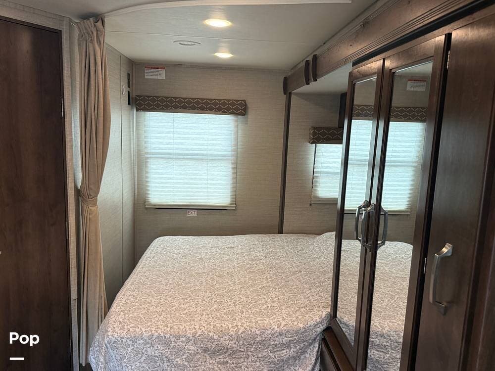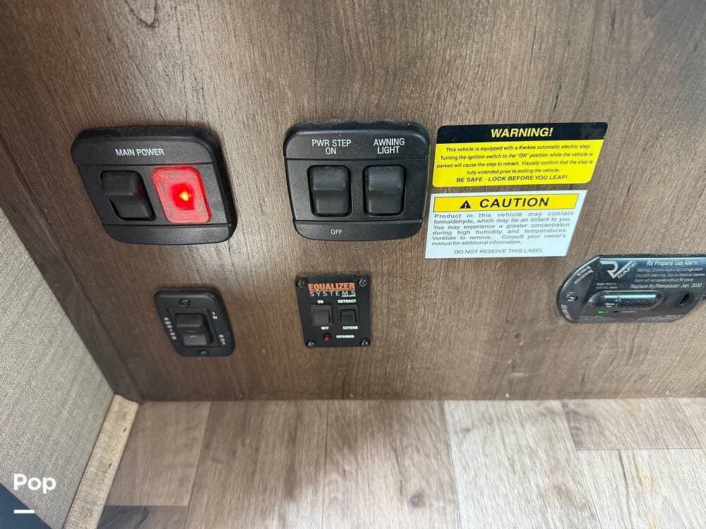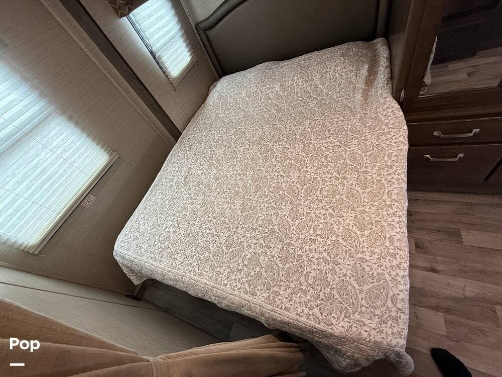 At the rear, you'll find a cozy queen bed with plenty of storage, plus a private bathroom with a shower and skylight for extra light and headroom. Additional highlights include a power awning with LED lighting, backup and side cameras, an Onan generator, and Jayco's signature JRide Plus system for a smoother drive.
