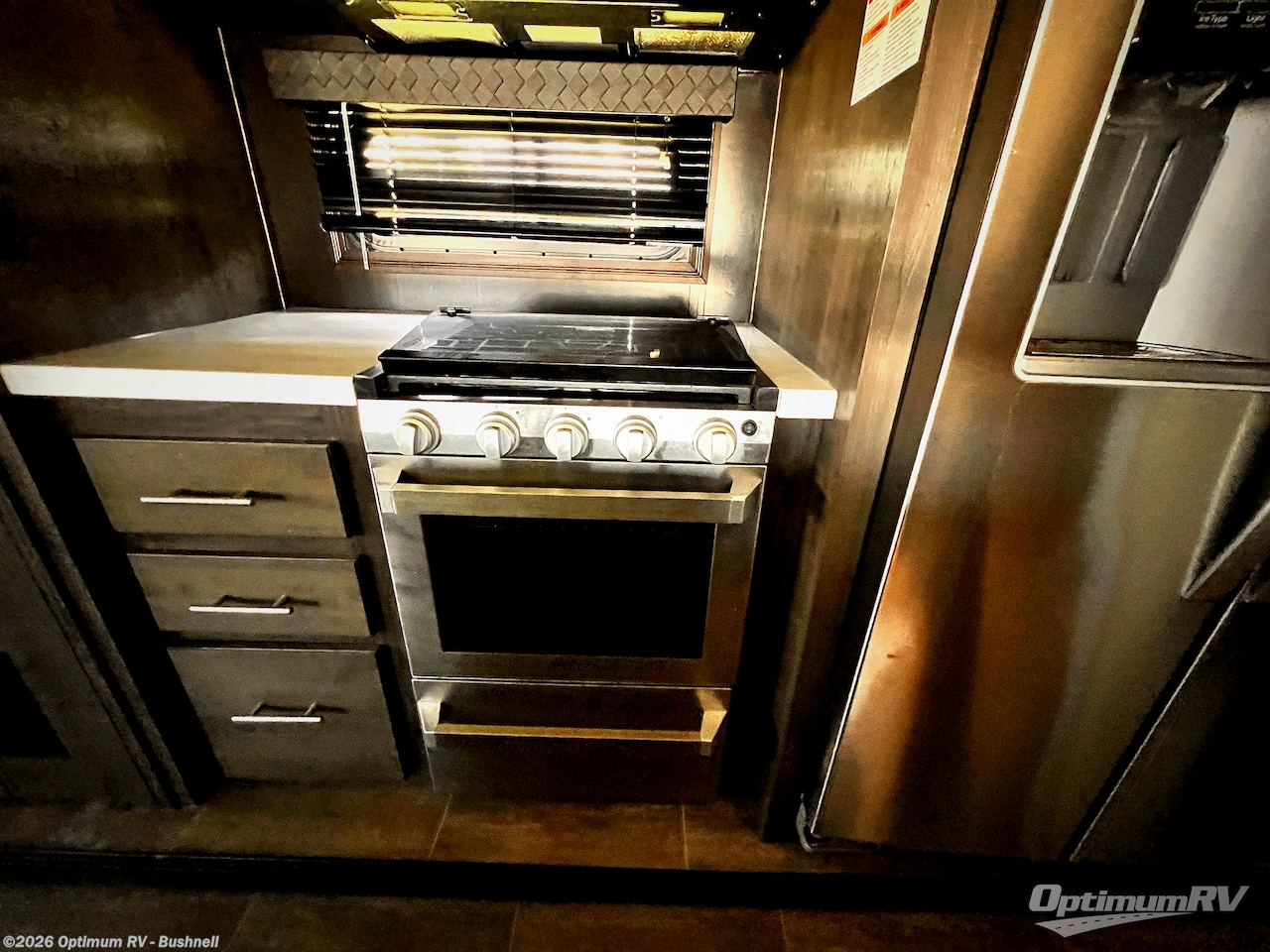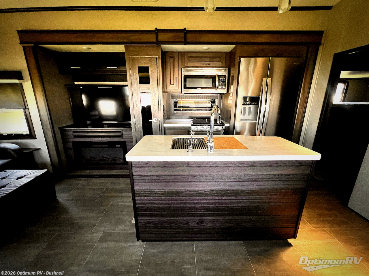 From its walk-in closet within the front private bedroom to its theater sofa and hide-a-bed sofa with ottoman in the rear living area, this North Point fifth wheel gives you home-like comfort all throughout! You will also find an LED HDTV in the rear living area so that you can watch a movie together with friends, and the bedroom also has its own 32" TV so that you can watch a movie in bed whenever you feel like doing so. The residential refrigerator will make it easy to bring along snacks and goodies for the duration of your trip, and if you get hot while preparing dinner in the kitchen, you can simply switch on the ceiling fan which will provide a cool breeze. You will also have an outside kitchen and a tailgate TV option, as well as a few more options, and many more features to enjoy.
