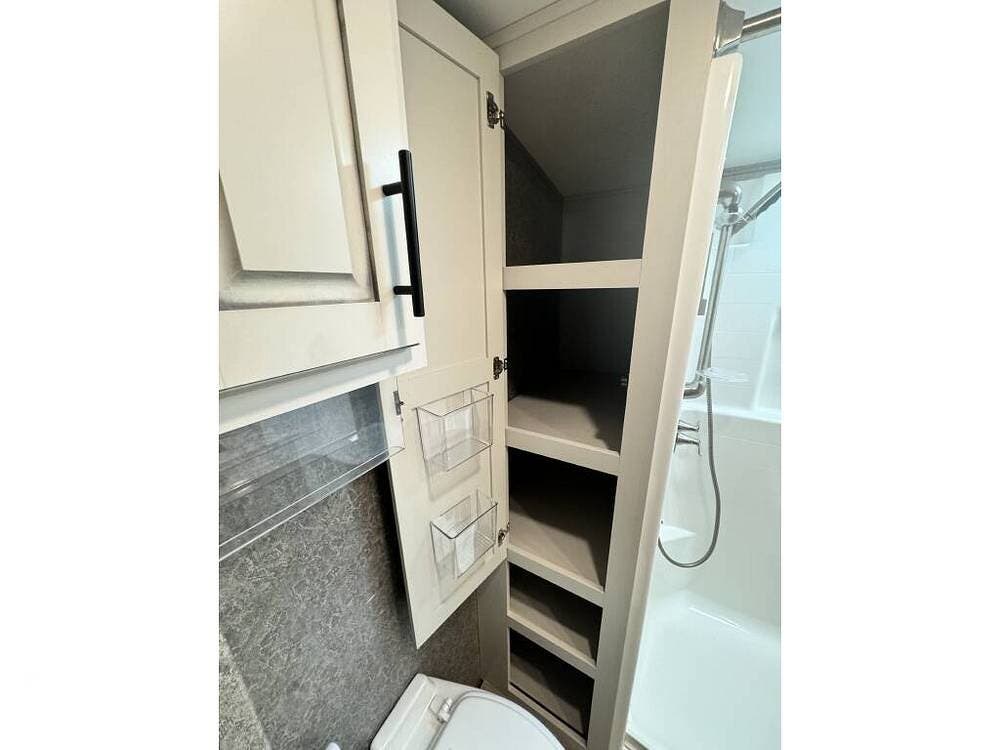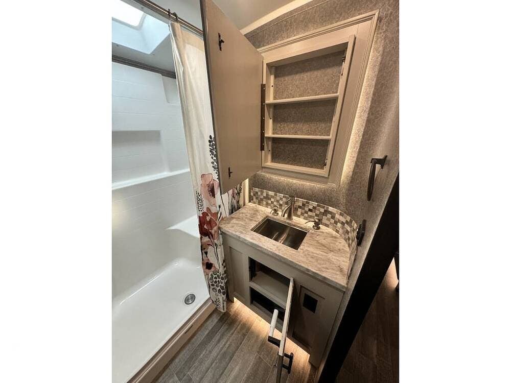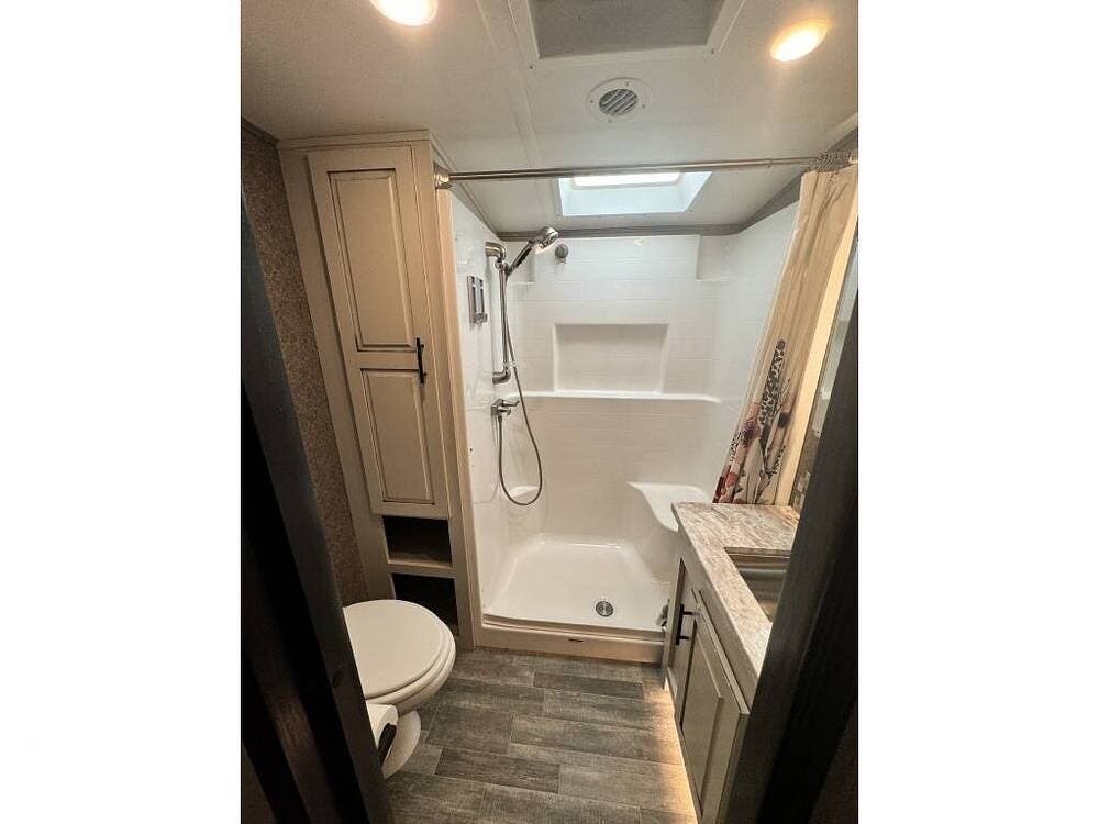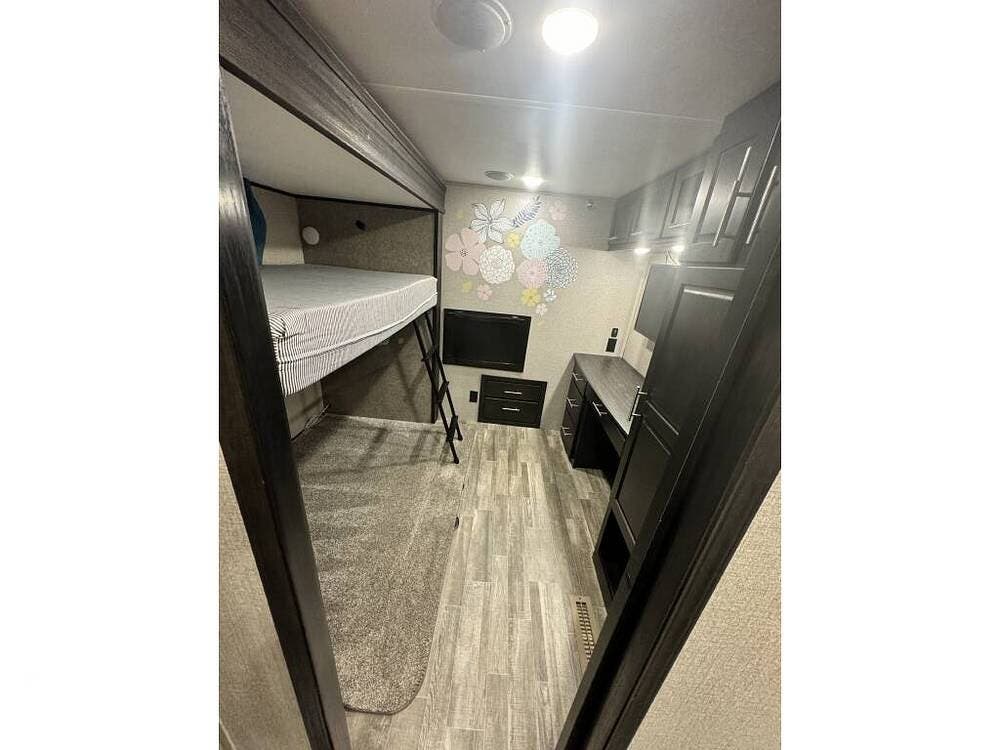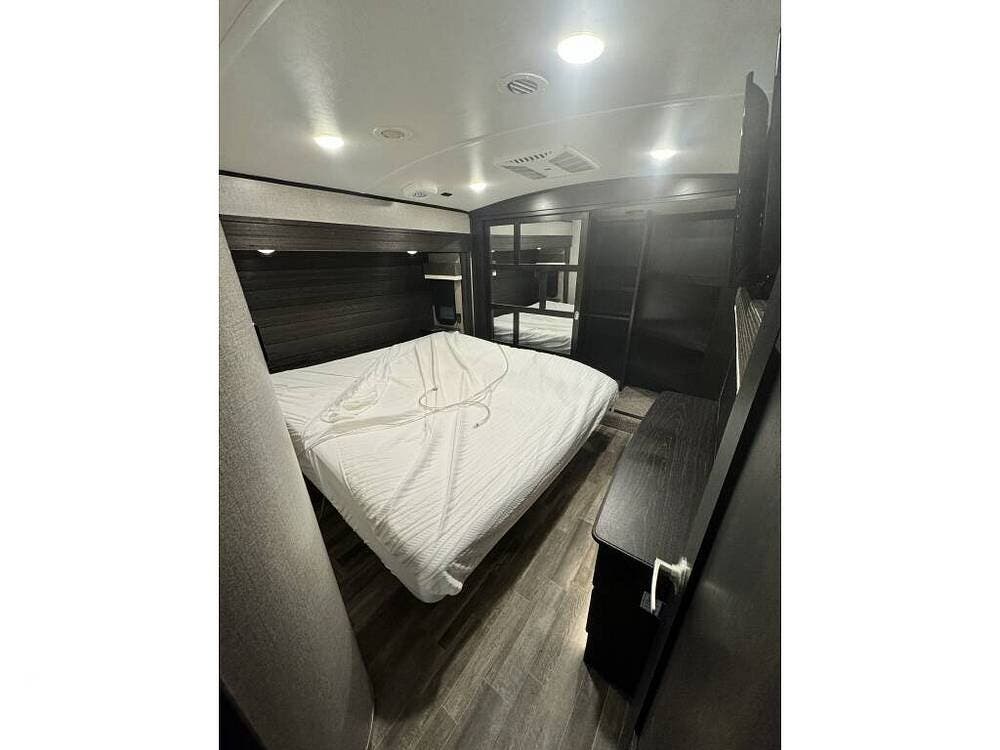 Featuring a large side bunk room and overhead loft, the sleeping capacity is tremendous and lends itself well to full-time living.