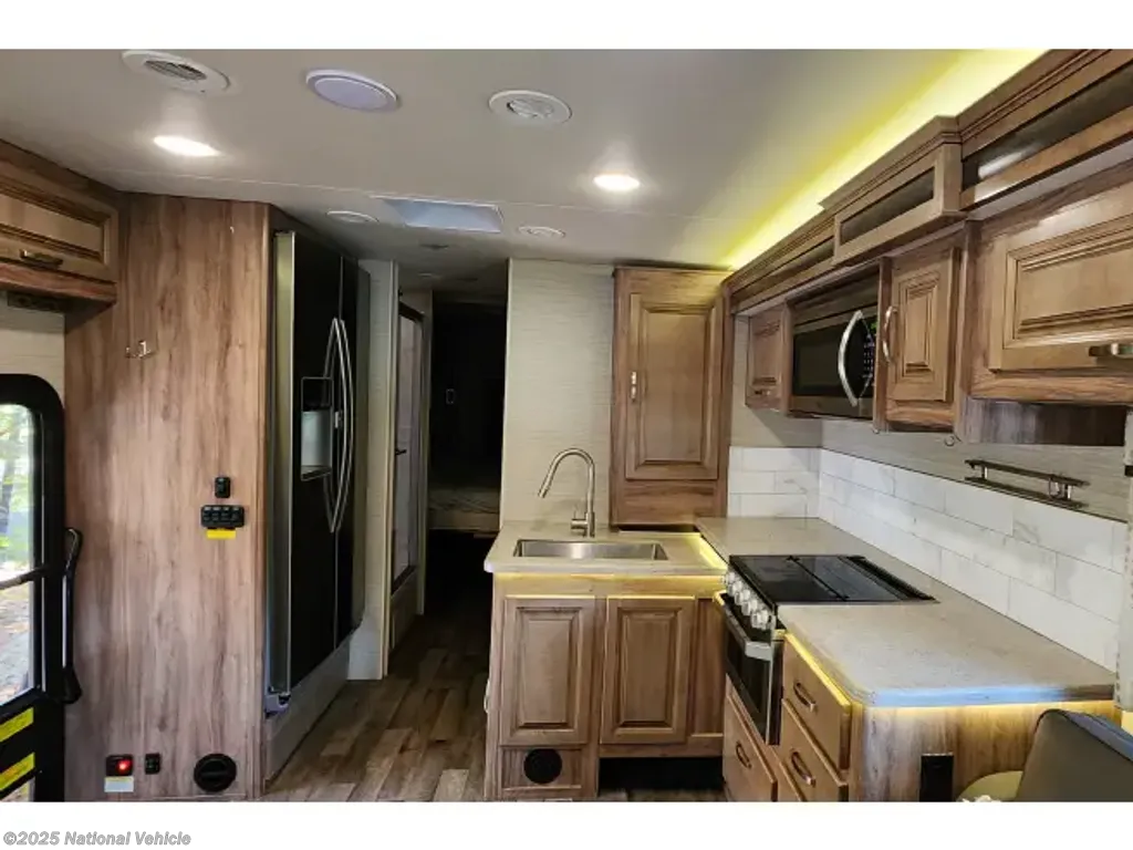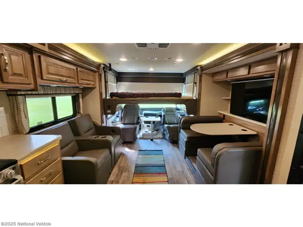 The 2020 Jayco Precept 31UL is a thoughtfully designed Class A gas motorhome that delivers a residential feel in a manageable size. Measuring just over 33 feet in length, it sits on a Ford chassis and is powered by a 7.3L Triton V8 engine, offering plenty of muscle for highway cruising and towing. This coach features three slide-outs that dramatically open up the interior space, making it ideal for extended trips or full-time RV living without stepping into an oversized rig.