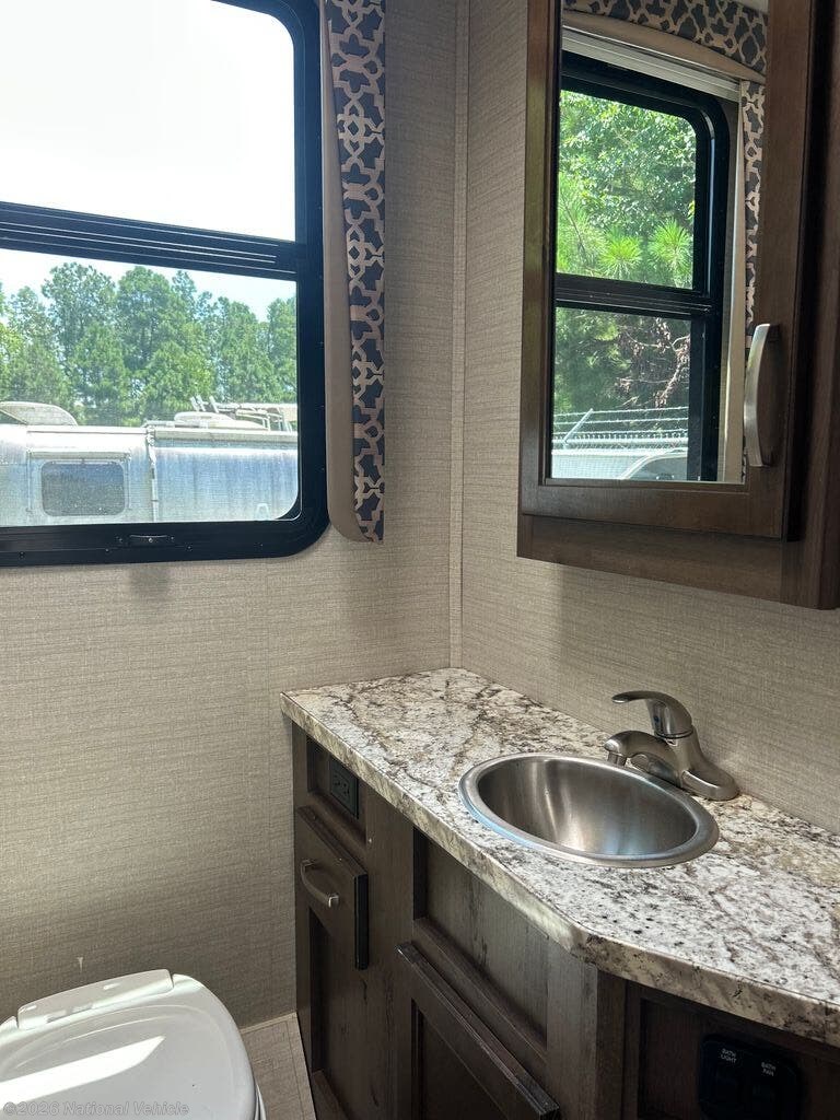 Inside, the 29XK features a spacious and thoughtfully arranged floor plan with a large slide-out that opens up the main living area. The fully equipped kitchen includes solid-surface countertops, a three-burner cooktop, oven, microwave, and a double-door refrigerator?making meal prep easy whether you're at a campground or off the grid. Ample cabinetry provides generous storage throughout.