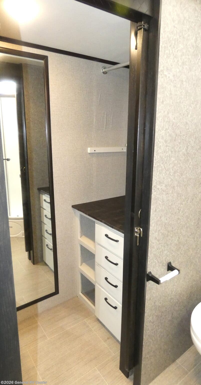 Experience the ultimate blend of comfort and adventure with the 2020 Jayco White Hawk 32KBS. This travel trailer is designed to be your home away from home, offering a spacious and inviting interior. At the heart of this RV is a luxurious front bedroom featuring a king-size bed, providing a restful retreat after a day of exploration. The center kitchen is equipped with a three-burner cooktop and a mid-size refrigerator, perfect for preparing your favorite meals on the road. The generous counter space, including a countertop extension, ensures you have plenty of room to work your culinary magic. The center living area is the perfect spot to relax, with theater seats and a dinette with four chairs. Enjoy movie nights with the entertainment center and cozy up by the fireplace, creating a warm and inviting atmosphere. The rear bath offers a convenient and private space, complete with a shower featuring a plastic and glass enclosure. Outside, the 21-foot powered retractable awning provides shade and comfort, while the outdoor kitchen makes alfresco dining a breeze. With ample storage, including overhead cabinets and wardrobes, you'll have no trouble bringing along all your essentials for the journey. Whether you're on a weekend getaway or an extended adventure, the White Hawk 32KBS ensures you travel in style and comfort. Discover more about this exceptional RV by visiting your nearest General RV dealership.