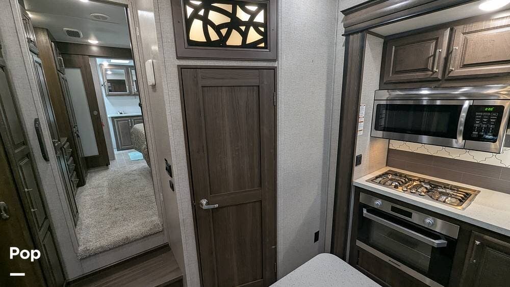 This 2020 Alpine 3700FL is ready for camping or boondocking in remote areas, offering complete luxurious living in this Keystone Fifth Wheel.