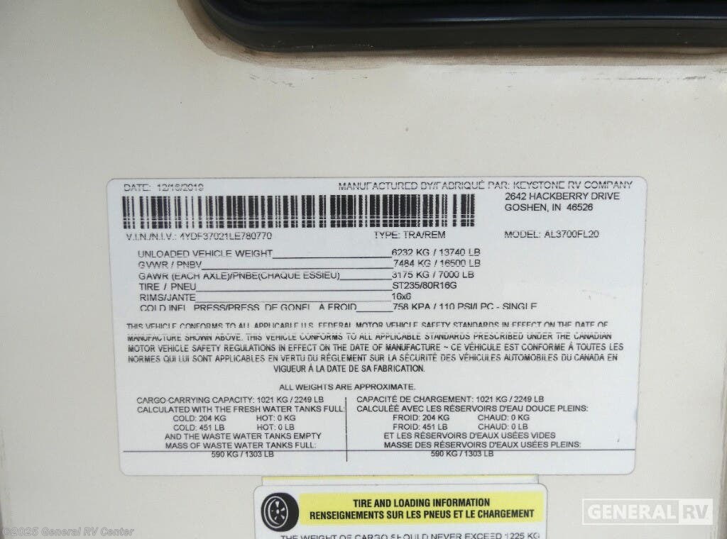 Request More Info on this 2020 Keystone Alpine 3700FL Offered for sale by General RV Center