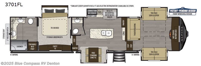 Keystone RV Alpine fifth wheel 3701FL highlights: