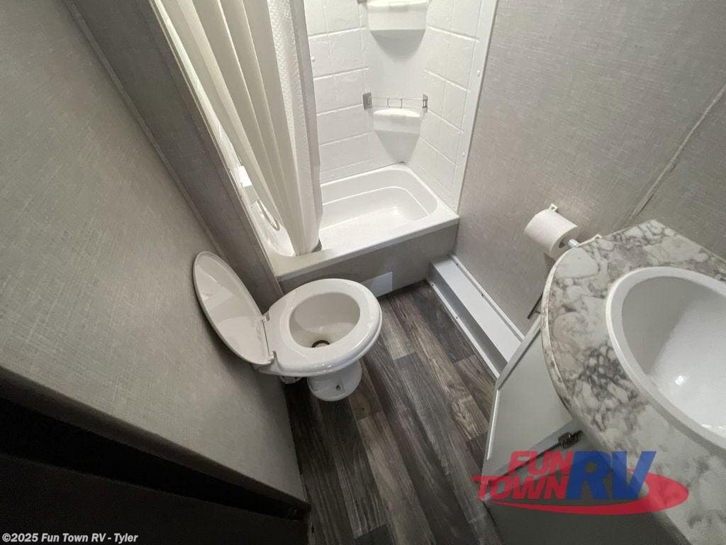 With its double-size bunks, queen-size bed, and booth dinette, this Bullet travel trailer gives you all the room you need to sleep seven people comfortably throughout any trip you take! The tub/shower in the rear bathroom also gives you convenient accommodations for you and your guests as you clean up after a muddy trek outside, and the 17' electric awning with LED lights will offer protection from any potential sunburn as you cook up dinner at the outdoor kitchen.