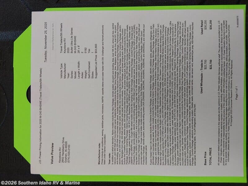 Request More Info on this 2020 Keystone Bullet 243BHSWE Offered for sale by Southern Idaho RV & Marine