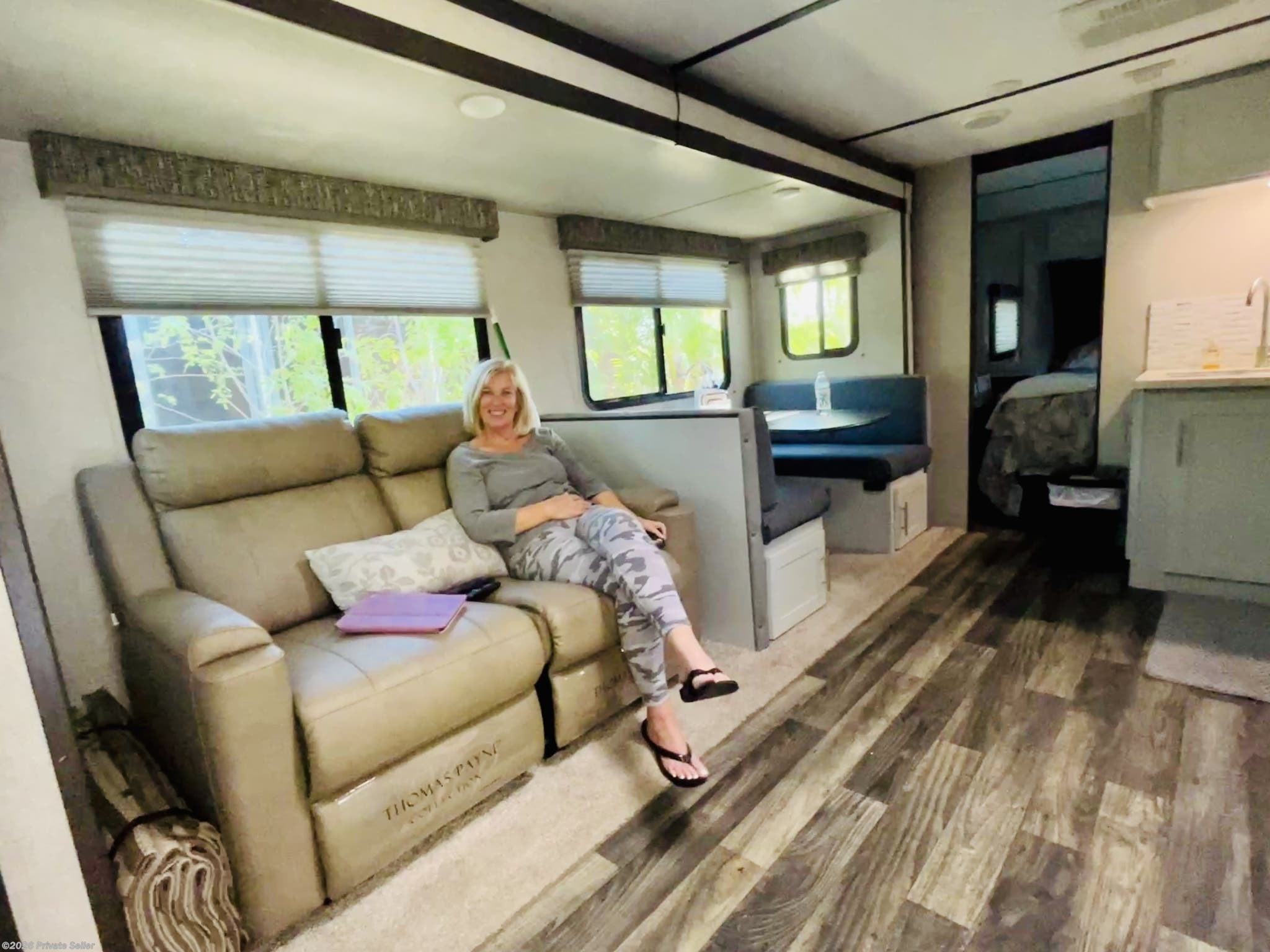 One owner beautiful travel trailer. Easy to tow with a 1/2 ton pick up. Lots of extras. Dual 12v battery with shut off, porcelain toilet, solid entry step, awining over the slide out, new recliners, storage compartment under the steps.