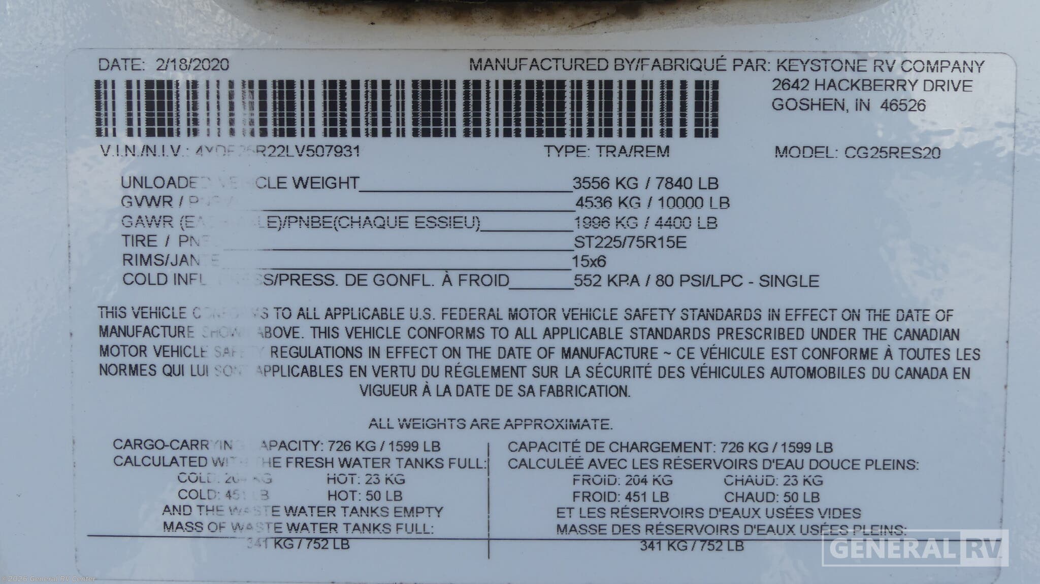 - VIN4YDF25R22LV507931
