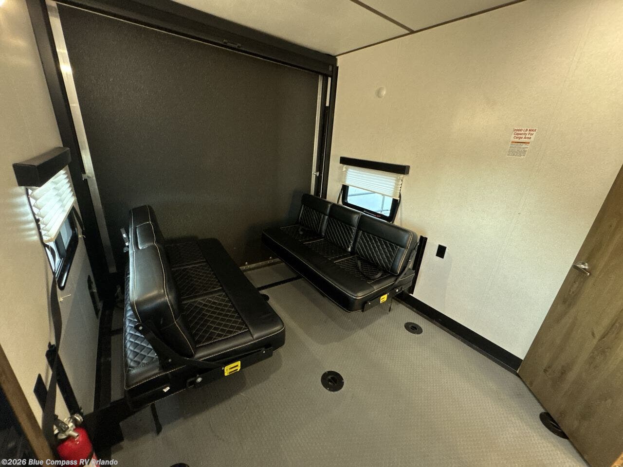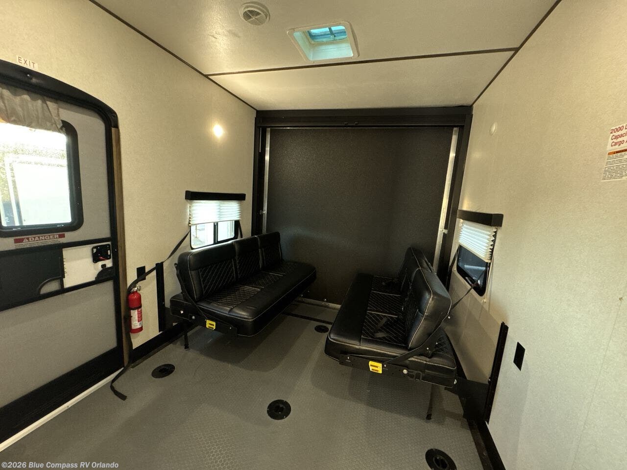Keystone specifically keeps you, the customer, in mind as they construct and build each Fuzion Impact Edition toy hauler. The 100" wide body and 5k interlock system with frame-welded tie-downs ensure convenient and secure shipment of your favorite ride-on toys. You will appreciate the Keystone Exclusives, such as the Tru-fit slide construction, the in-floor heating ducts, 4G LTE and Wi-Fi prep, plus many more hassle-free features. Each model includes a 30-gal. fuel station with a 12V pump and a static line and the Omni-Chill A/C system, which is the highest-performing energy-efficient system available. Inside, you will love the hardwood cabinetry, pressed countertops in the kitchen, and large tinted safety-glass panoramic windows to let natural light in. These toy haulers also feature plenty of storage space for all your belongings, including under-bed storage and a lighted pass-through compartment!