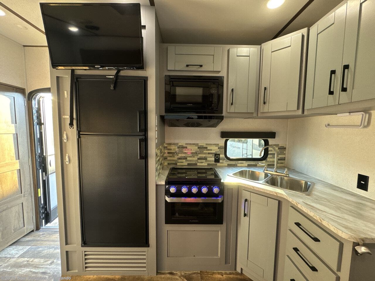 Keystone specifically keeps you, the customer, in mind as they construct and build each Fuzion Impact Edition toy hauler. The 100" wide body and 5k interlock system with frame-welded tie-downs ensure convenient and secure shipment of your favorite ride-on toys. You will appreciate the Keystone Exclusives, such as the Tru-fit slide construction, the in-floor heating ducts, 4G LTE and Wi-Fi prep, plus many more hassle-free features. Each model includes a 30-gal. fuel station with a 12V pump and a static line and the Omni-Chill A/C system, which is the highest-performing energy-efficient system available. Inside, you will love the hardwood cabinetry, pressed countertops in the kitchen, and large tinted safety-glass panoramic windows to let natural light in. These toy haulers also feature plenty of storage space for all your belongings, including under-bed storage and a lighted pass-through compartment!