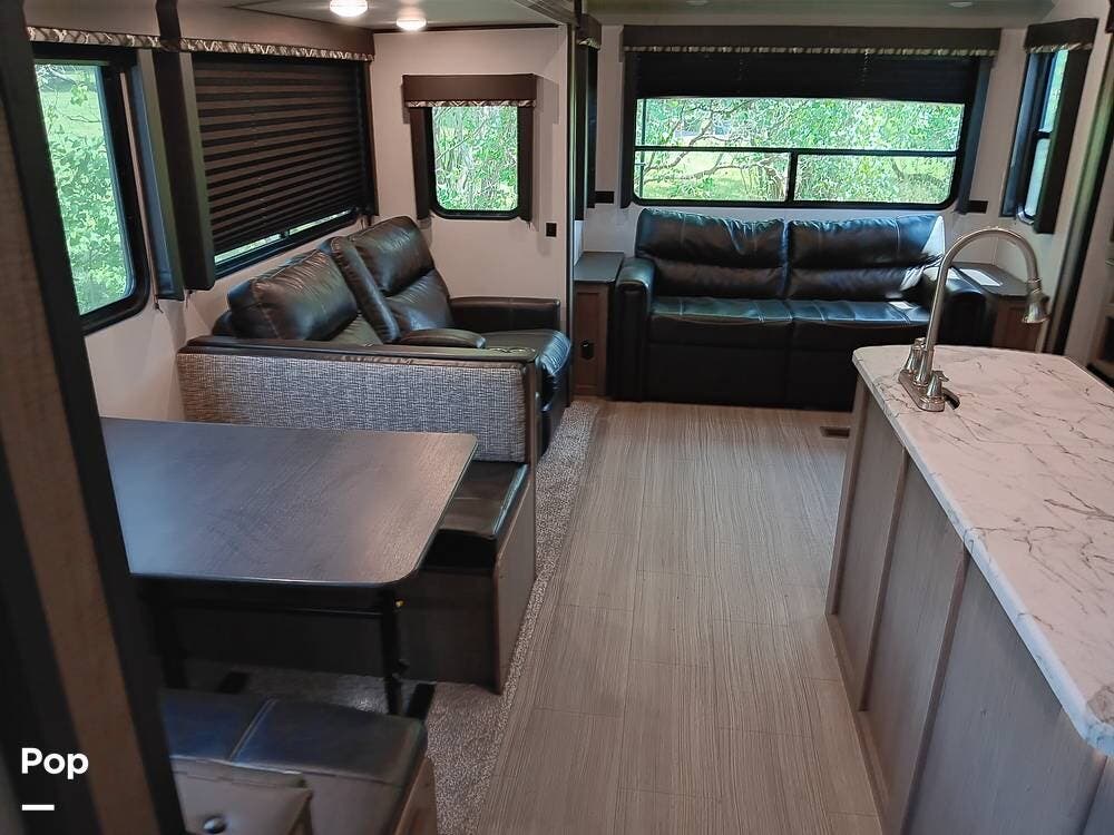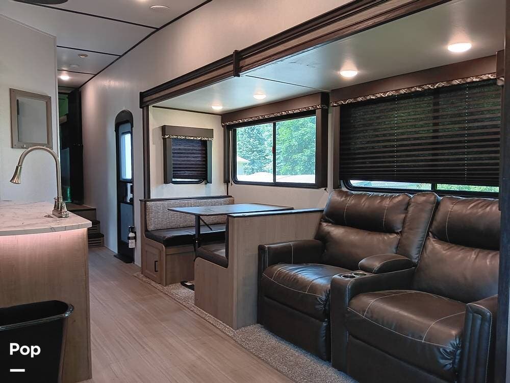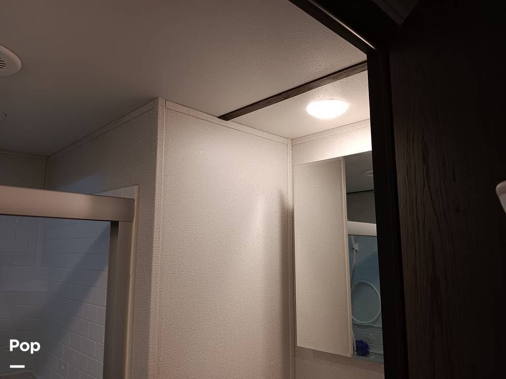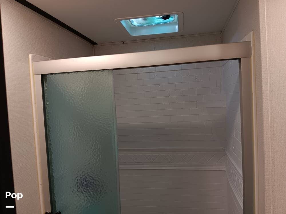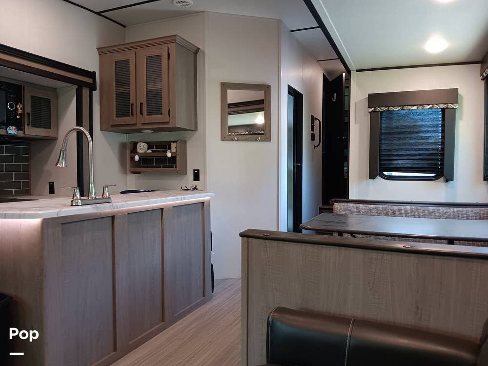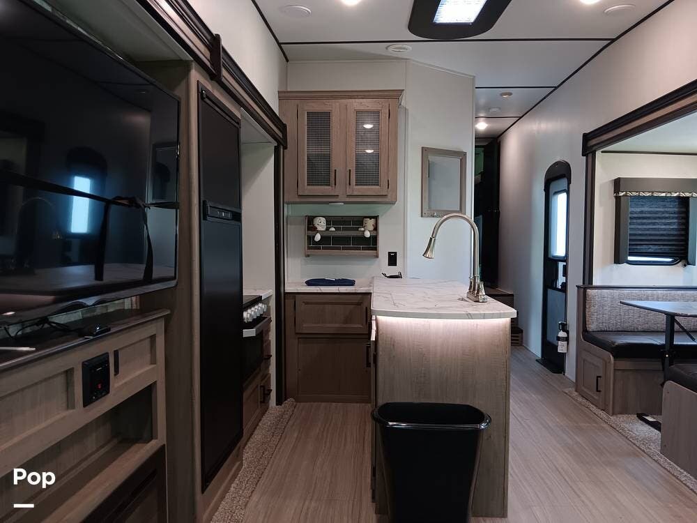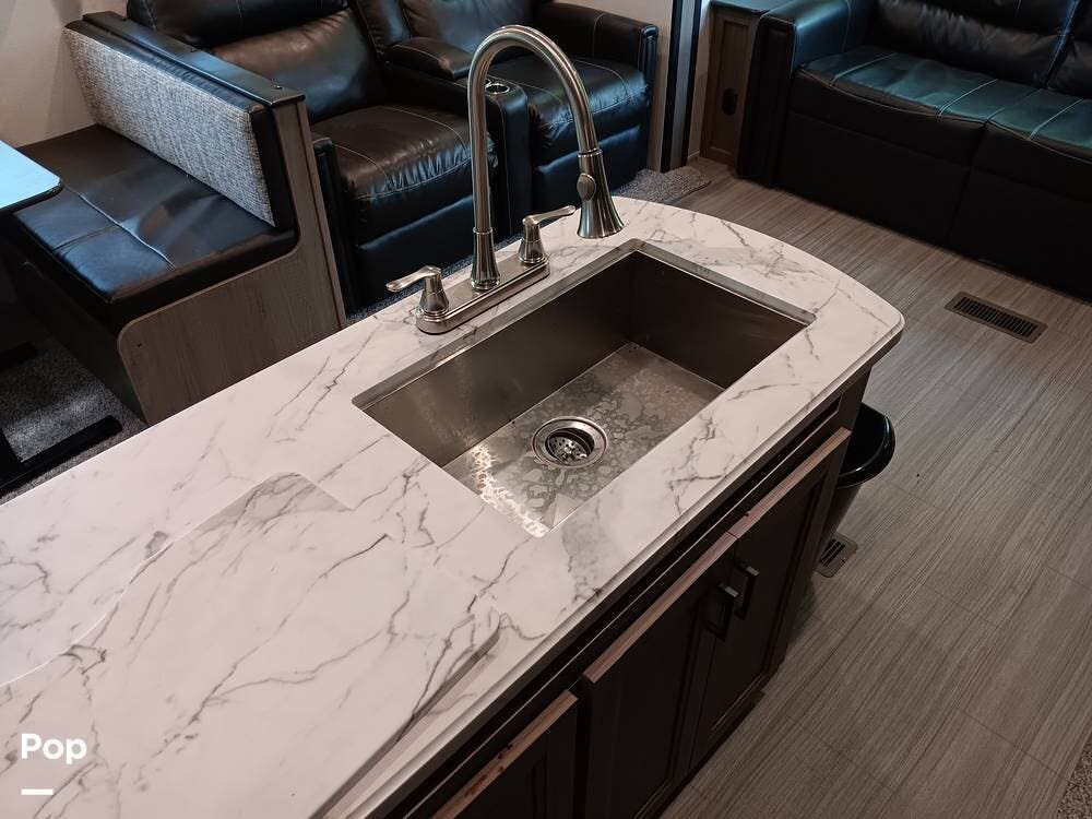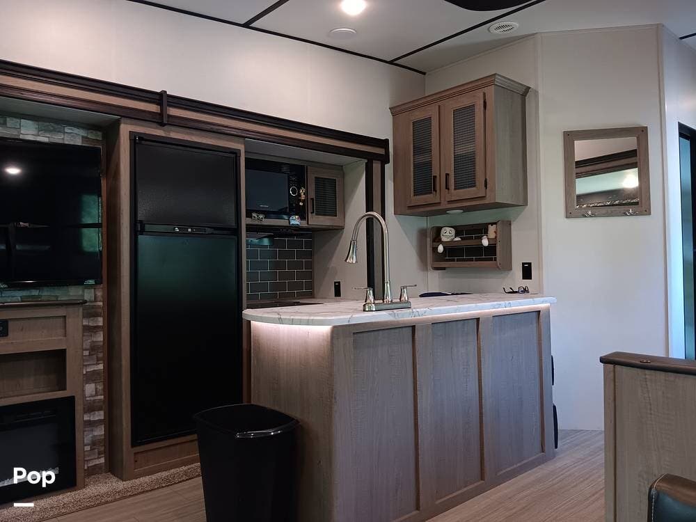 But that's not all--this fifth wheel also boasts a stylish bathroom with a shower and plenty of counter space, ensuring you can freshen up easily.