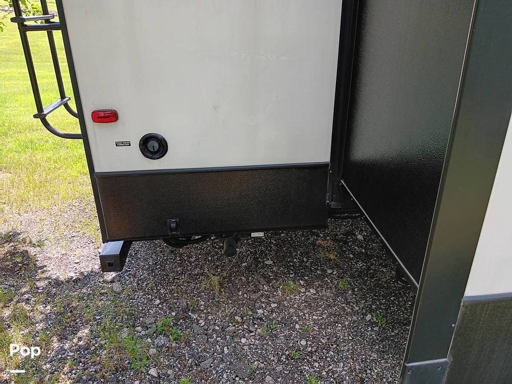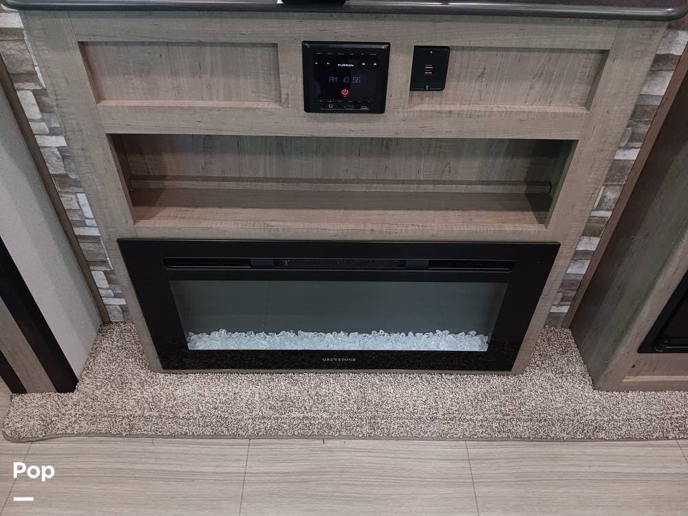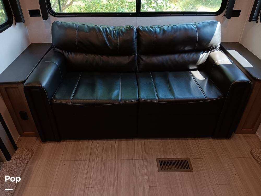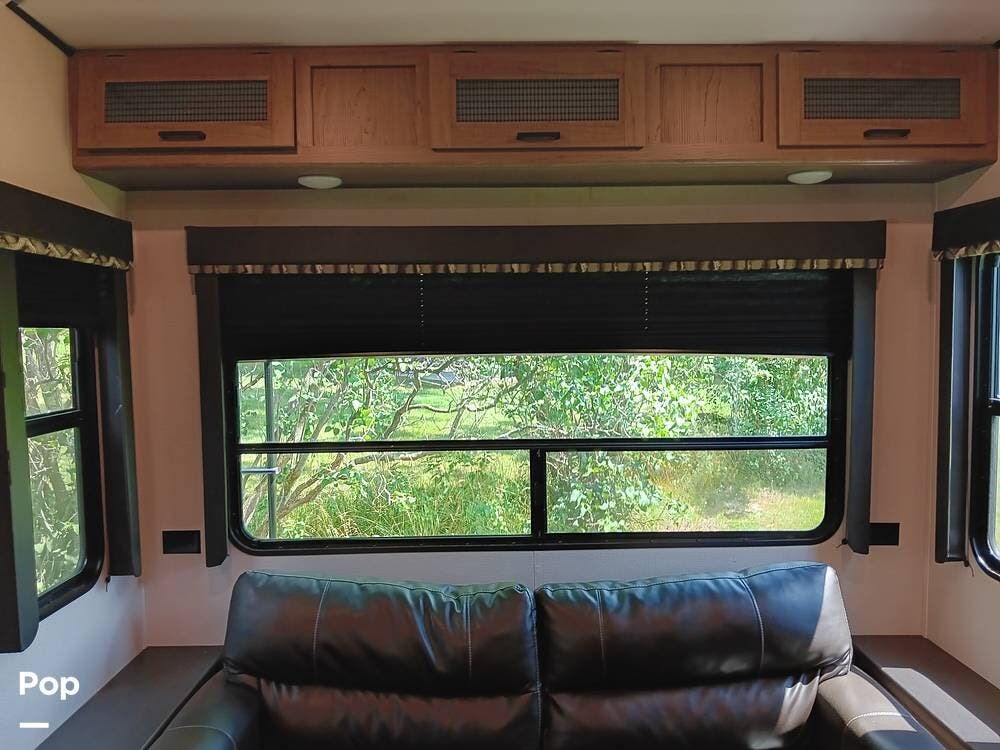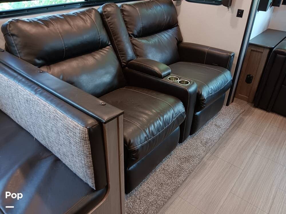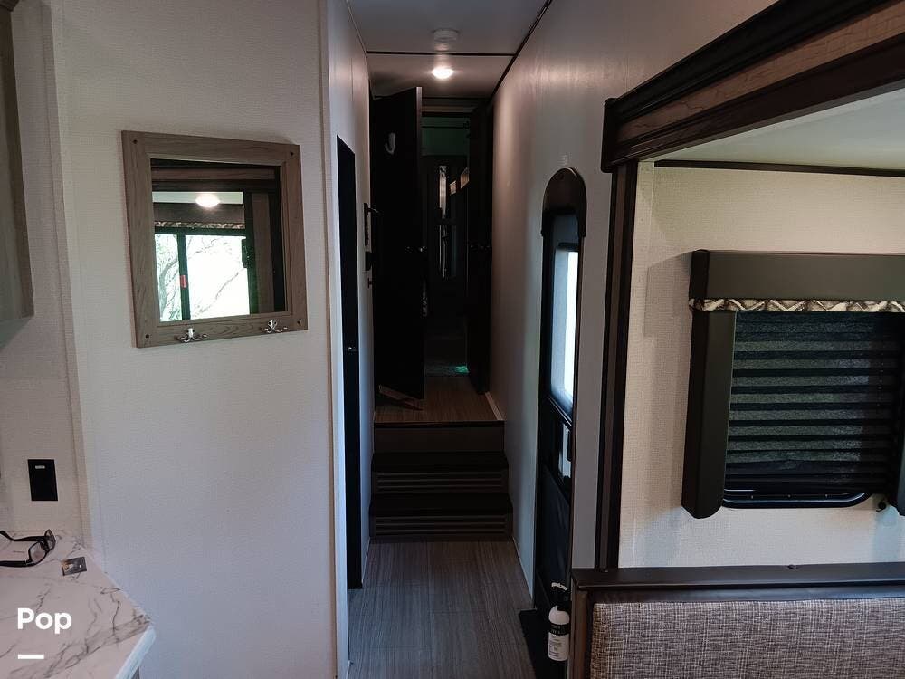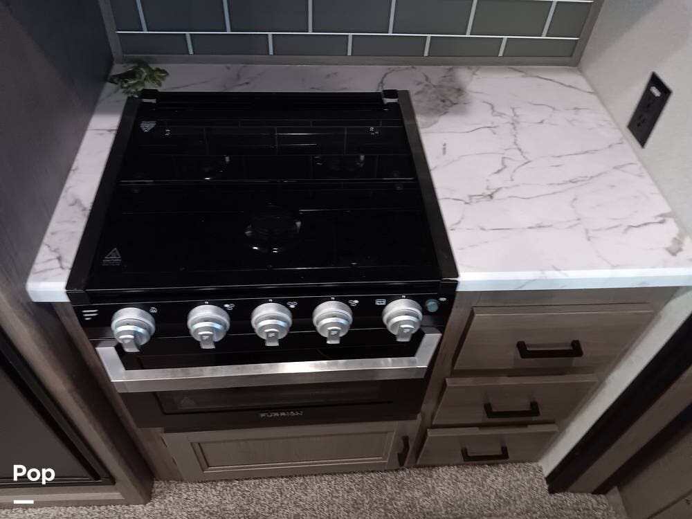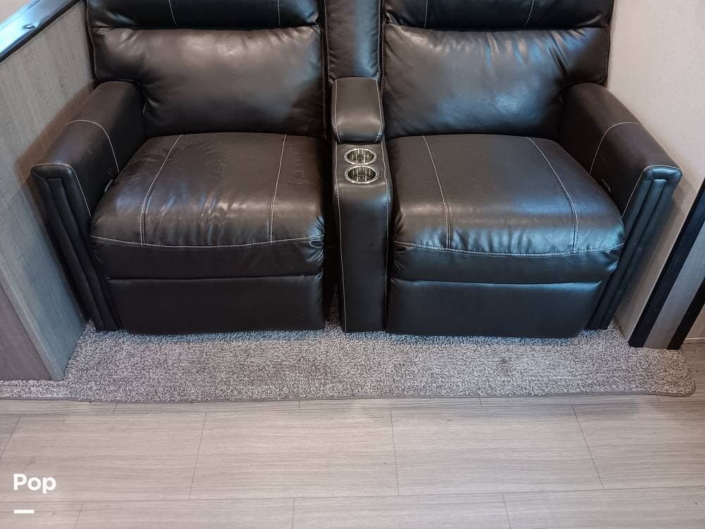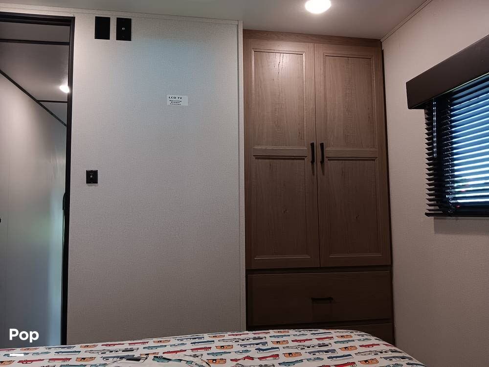 But that's not all--this fifth wheel also boasts a stylish bathroom with a shower and plenty of counter space, ensuring you can freshen up easily.