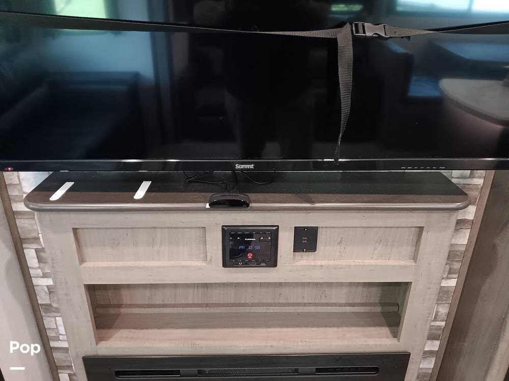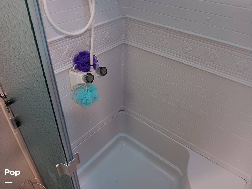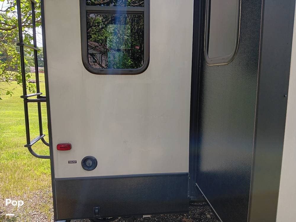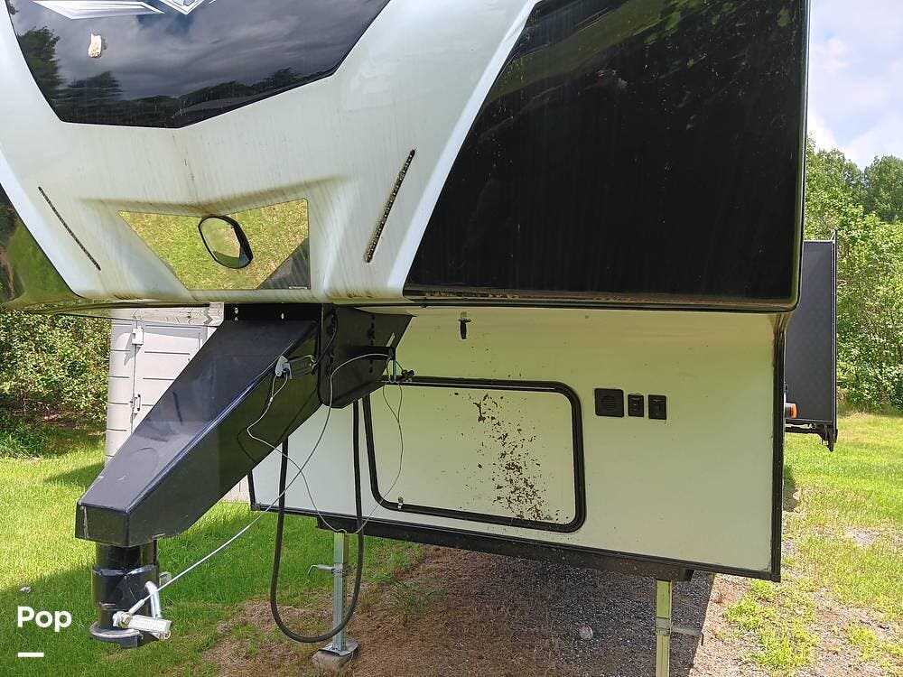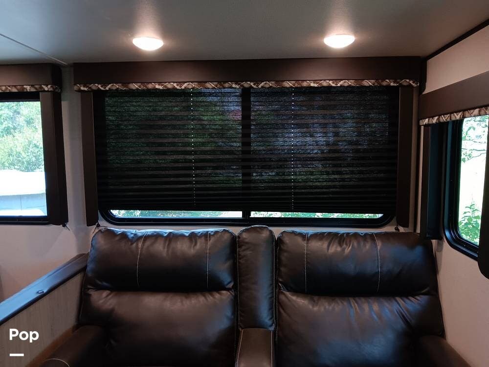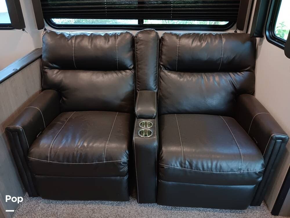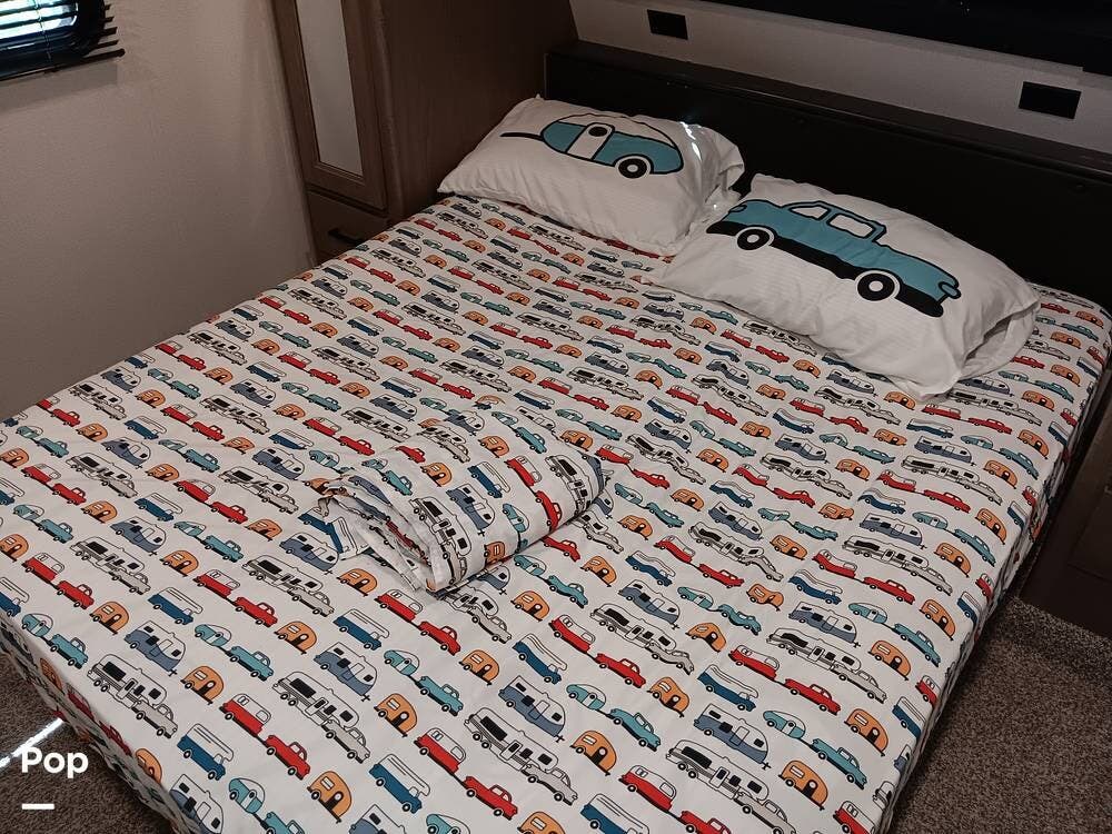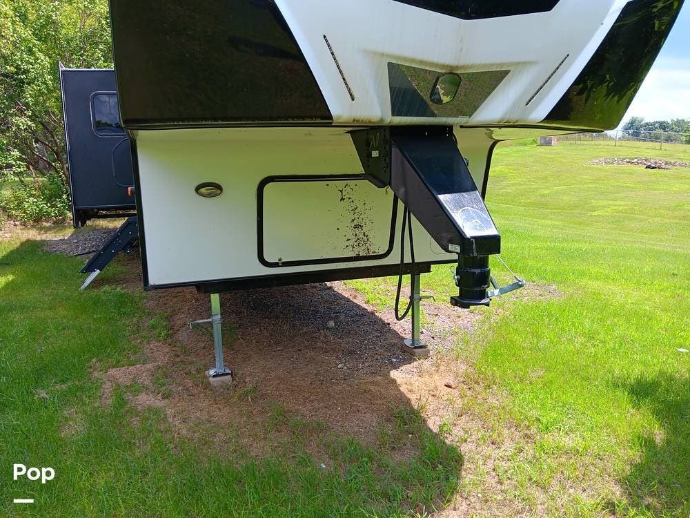 But that's not all--this fifth wheel also boasts a stylish bathroom with a shower and plenty of counter space, ensuring you can freshen up easily.