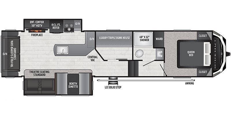 The highlight of the HIDEOUT 320MBDS is its sleeping arrangements. With a master bedroom featuring a cozy queen bed and a separate bunkhouse for the kids or guests, everyone can rest easy and recharge for the next day's adventures.