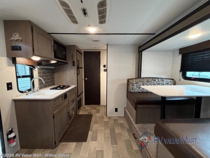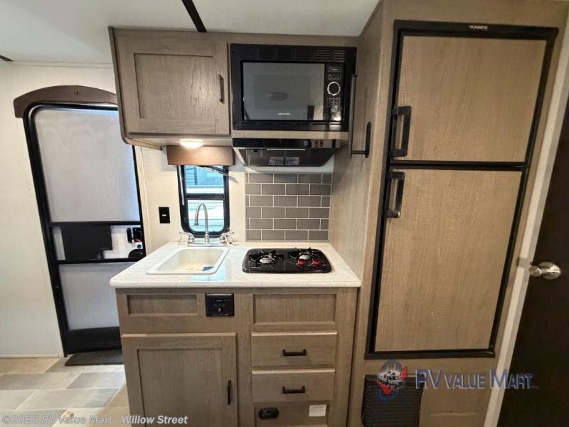 See the world through fresh eyes in the crisp and clean Hideout Single Axle travel trailers and toy haulers from Keystone RV! The powder-coated frame, cambered chassis, flex-pex tubing, and Dexter E-Z Lube axle will provide you with a durable foundation for all of your travels. You will also be amazed by the beautiful interior decor. The Platinum Maple cabinets, Burlap Shale wall board, and White Cascade countertops will deliver an upscale and modern space to enjoy while you are vacationing, and the wood plank feature wall, black cabinet hardware, and all-new backsplash will certainly add to that stylish vibe. The Furrion Bluetooth radio and blue LED exterior speakers will let you keep your summer parties sizzling, and you can also make your Hideout even more functional by adding solar panels and a Furrion back-up camera to the areas that have been prepped for these features.
