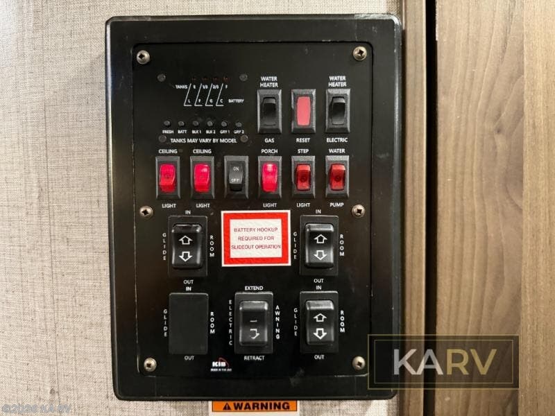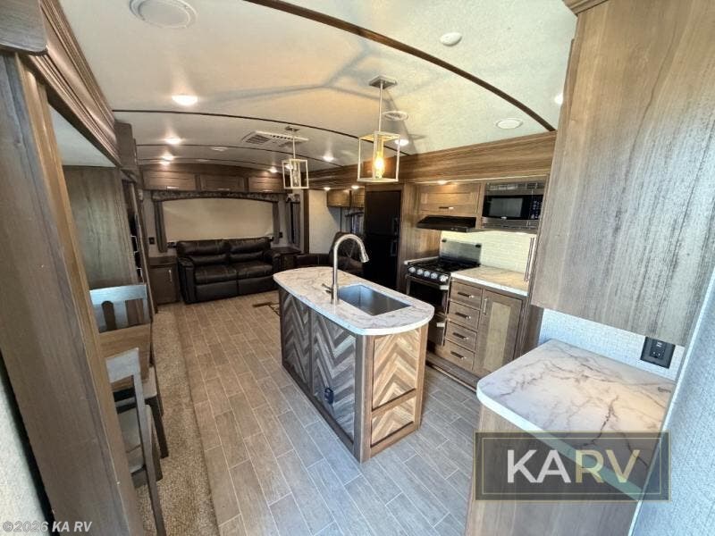 The Keystone Laredo fifth wheels and travel trailers are the very best at delivering upscale amenities, contemporary styling, and a variety of models! These units will allow you to travel with confidence because they come with Max Turn Technology which helps you maneuver easily into any campsite, and the Solid Step entry door remains level to the ground so that you can always enter safely. With a fully enclosed and heated underbelly and tanks, you will be able to adventure during any season without worry, and the oversized lighted and heated pass-through storage compartment will provide a safe place for all of your gear.