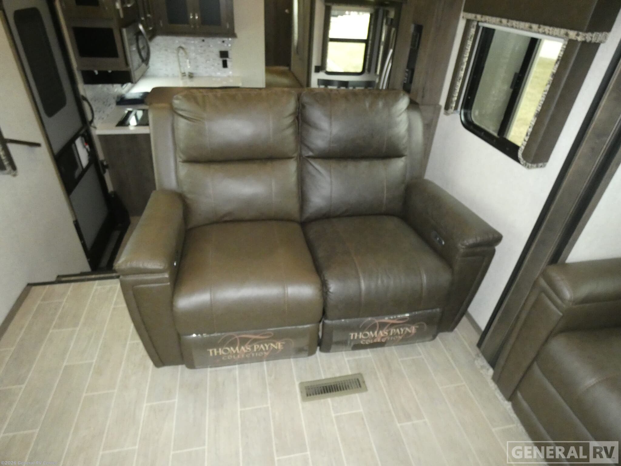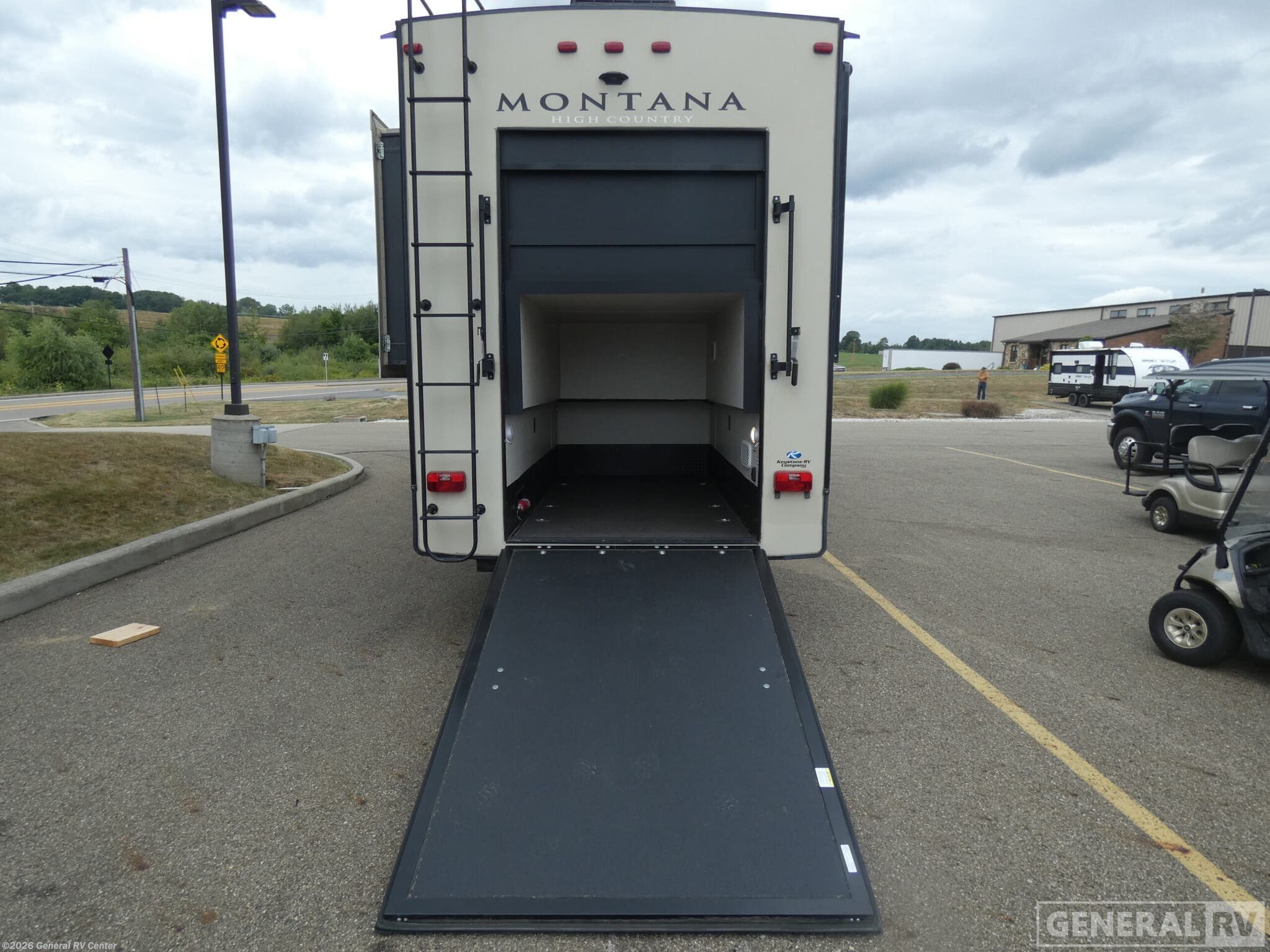 Experience the perfect blend of luxury and functionality with the 2020 Keystone Montana High Country 381TH. This fifth wheel is designed to be your home away from home, offering a spacious 41.5-foot layout that comfortably sleeps up to eight. The front living area is a true highlight, featuring cozy seating and ample space for entertaining or relaxing after a day of adventure. With four slides, the interior opens up beautifully, providing a roomy environment that feels both inviting and practical. The center kitchen is equipped with a full-size electric refrigerator and a three-burner cooktop, making meal preparation a breeze. Enjoy your culinary creations at the table with chairs, perfect for family meals or game nights. The rear bedroom offers a queen bed and a unique below-floor garage, adding versatility for those who travel with extra gear. The unit is prepped for a washer and dryer, ensuring convenience for extended trips. With two powered retractable awnings, you can enjoy outdoor living in comfort and style. Discover the Montana High Country's thoughtful design elements, such as its automatic heater and 12-gallon water heater, which provide comfort no matter the weather. The dual awnings extend your living space outdoors, while the robust 60-amp electrical service ensures you have all the power you need. Whether you're hitting the road for a weekend getaway or embarking on a cross-country adventure, this RV is ready to elevate your travel experience. For more details, visit your nearest General RV Dealership Location.