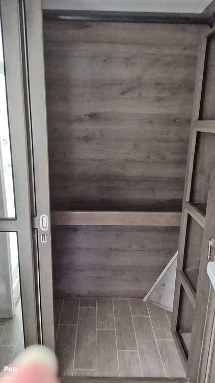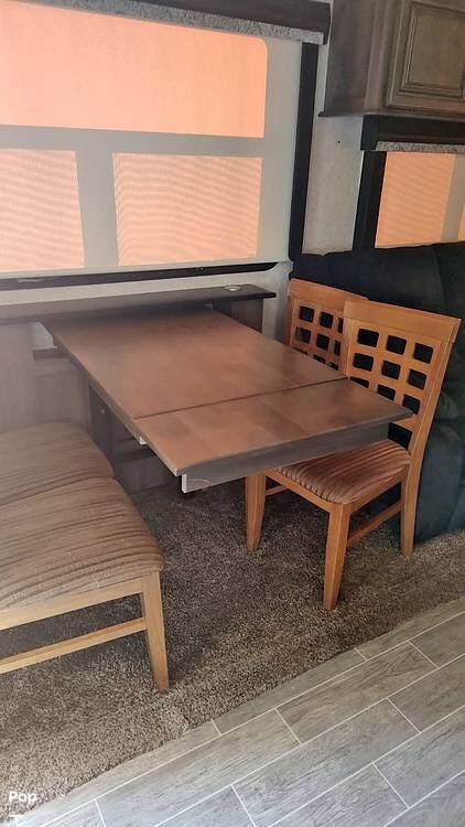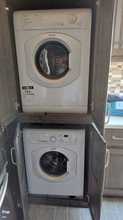 On the inside, get ready for comfort! The main bedroom and bathroom are to the right as you enter. To the left, find the large living area with a fully equipped kitchen, a recliner, and a sofa sleeper. The space is wide open and ideal for entertaining friends and family.