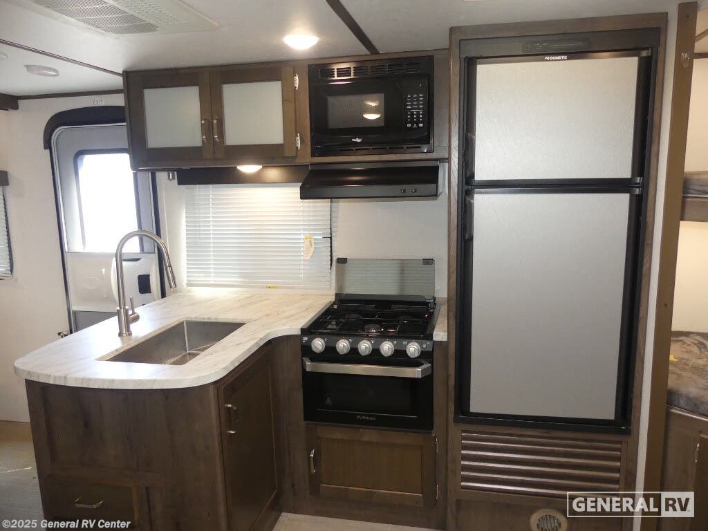 If you have decided to upgrade your RV, this Passport travel trailer is the ticket! You will find comfortable bedding in the private bedroom for yourself and double-size bunks for the kids on the opposite side of the trailer. If extra friends tag along, the U-shaped dinette slide provides additional sleeping space for one to two campers, as well as floor space for everyone. The chef can choose between the inside appliances and the outside kitchen to make meals, and there is a full bathroom conveniently next to the bunks. Step inside to see how roomy and comfortable this Passport will be for you and your family for years to come. The Passport SL Series travel trailers by Keystone RV come in a compact design with travel-friendly lengths that are lightweight and easy to tow behind many smaller crossover SUVs. You will find several residential-style features such as durable Armstrong vinyl flooring, residential interior doors, and upgraded leather furniture. Plus, there is also a stainless steel sink with a pull-down faucet. The exterior shower is very useful as you get cleaned up before entering the RV, wash your pets, or even rinse a few dishes outside. Choose your favorite Passport SL Series today, and start going everywhere!