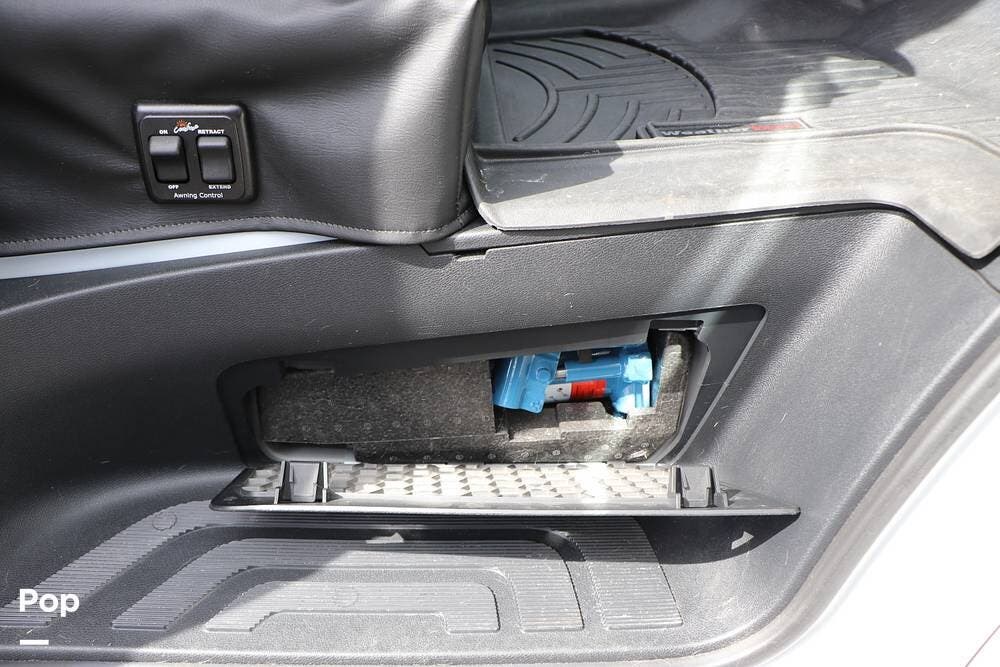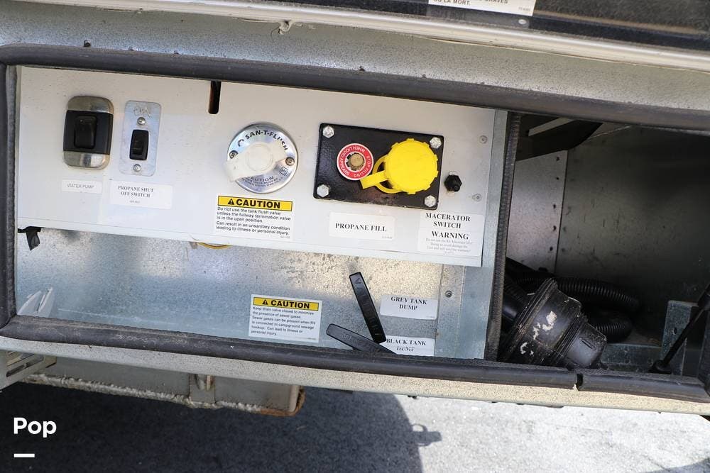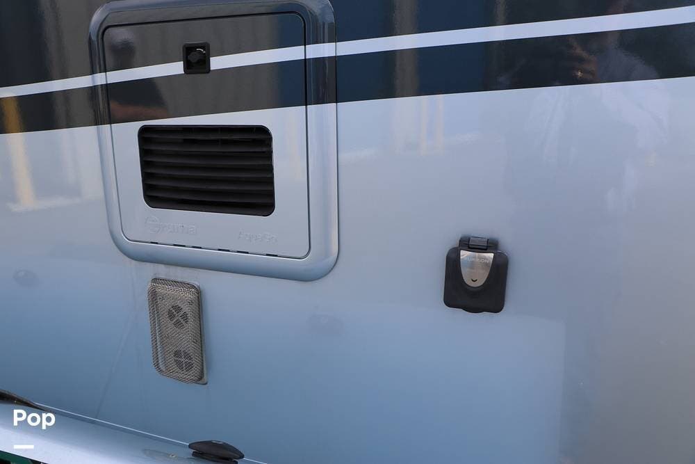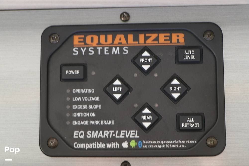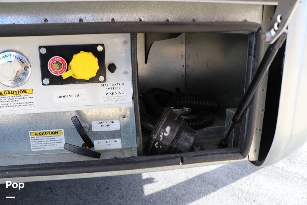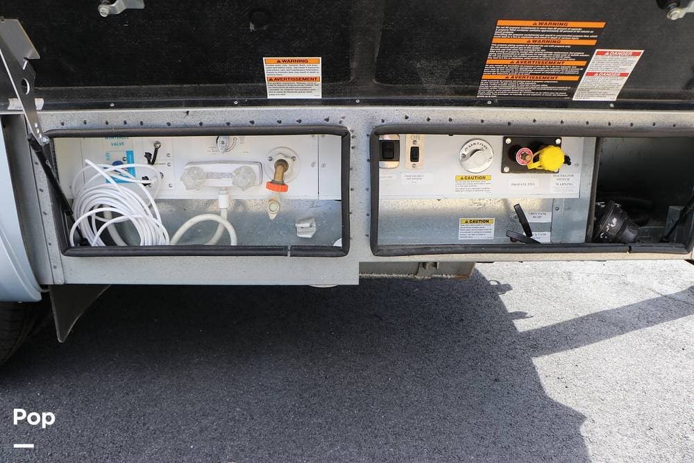 The exterior is enhanced by the power patio awning that quickly expands to create an outdoor living space. The unit has multiple exterior storage compartments, and all of the RV systems are clearly marked and easily accessible around the exterior of the RV.