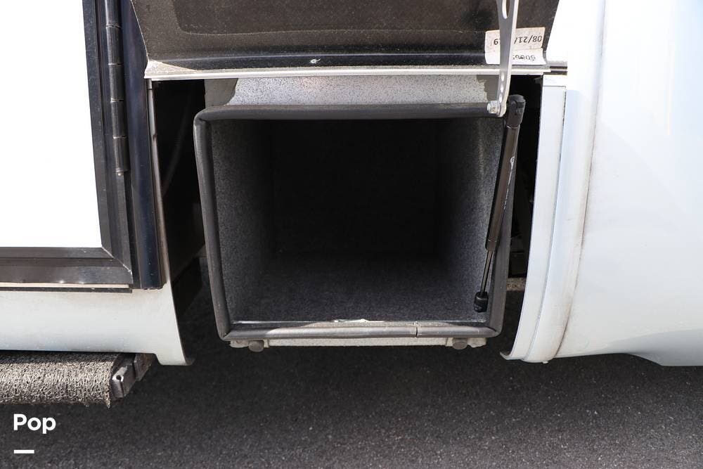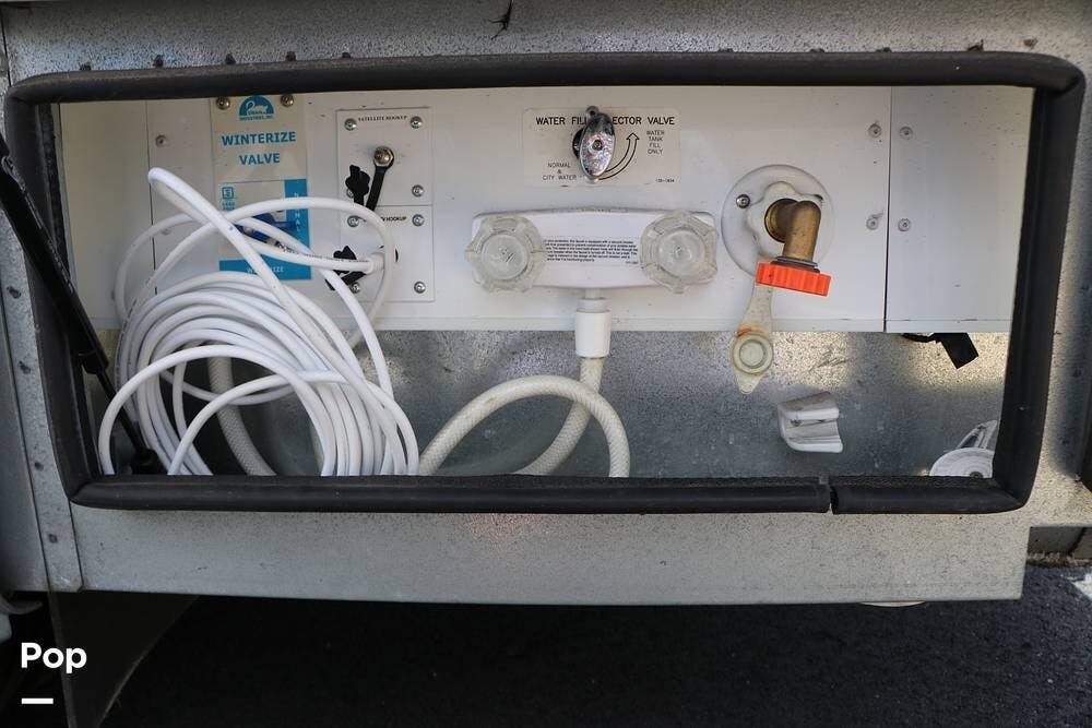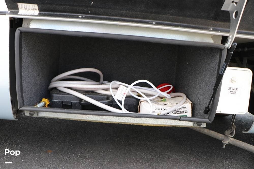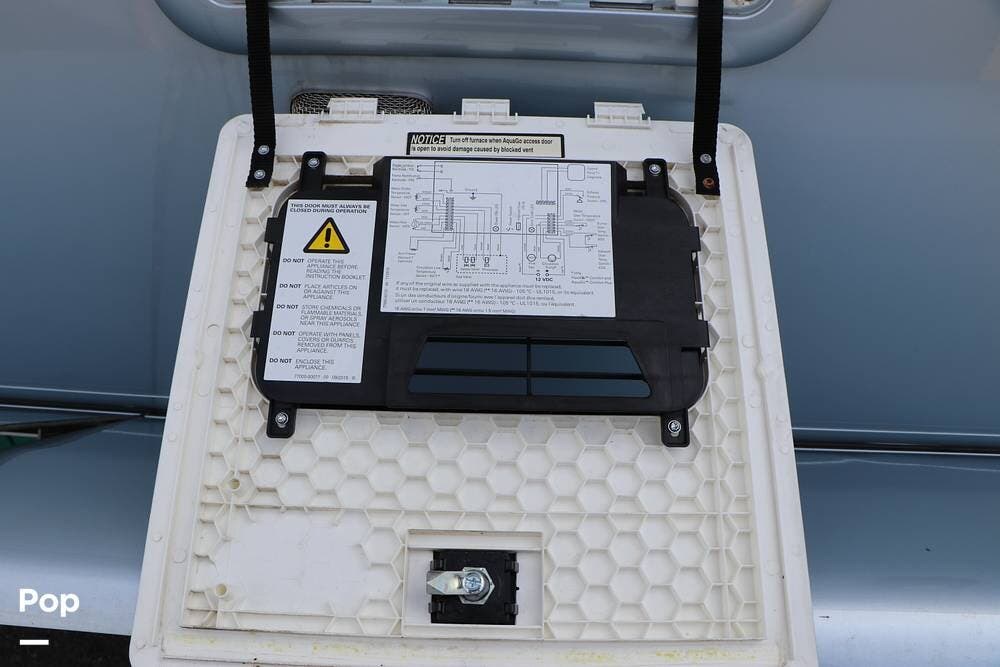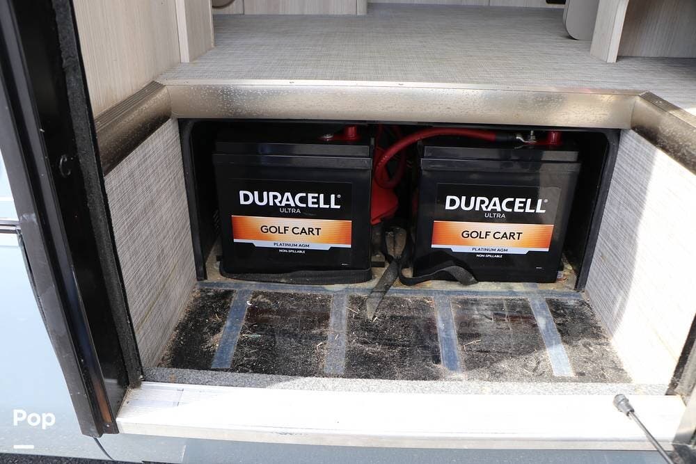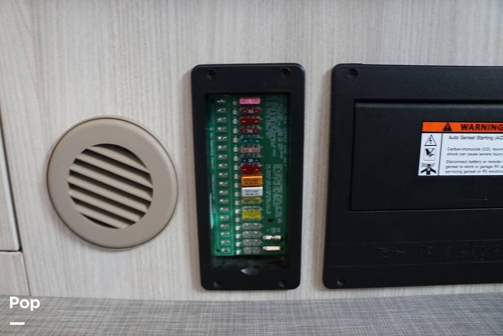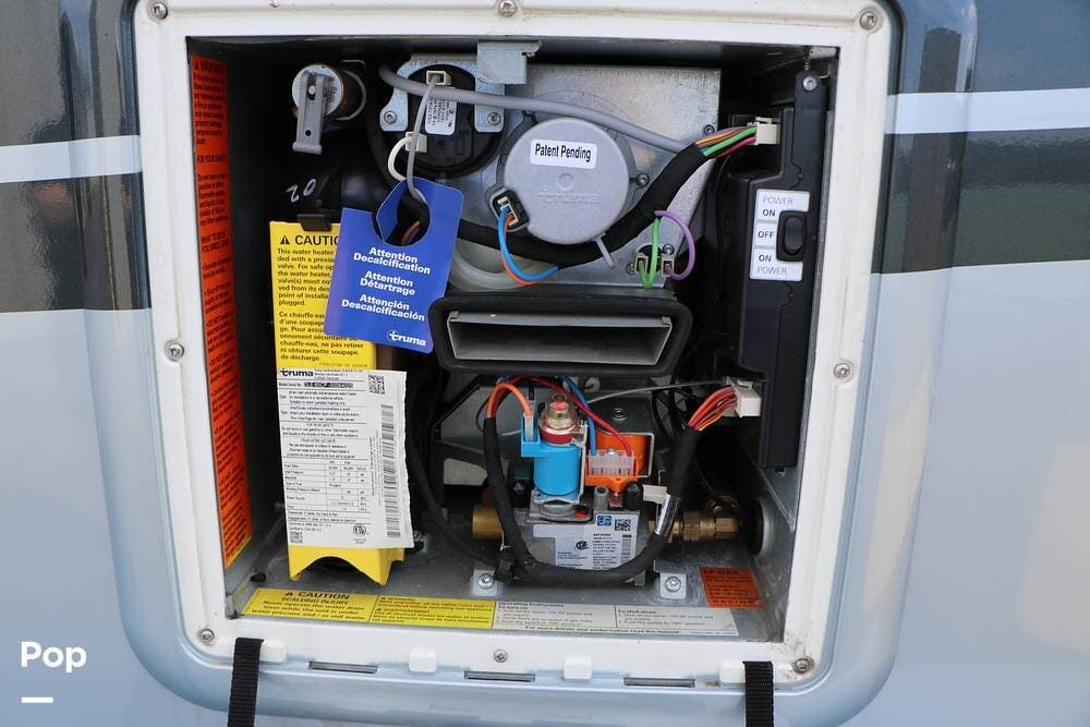 The exterior is enhanced by the power patio awning that quickly expands to create an outdoor living space. The unit has multiple exterior storage compartments, and all of the RV systems are clearly marked and easily accessible around the exterior of the RV.