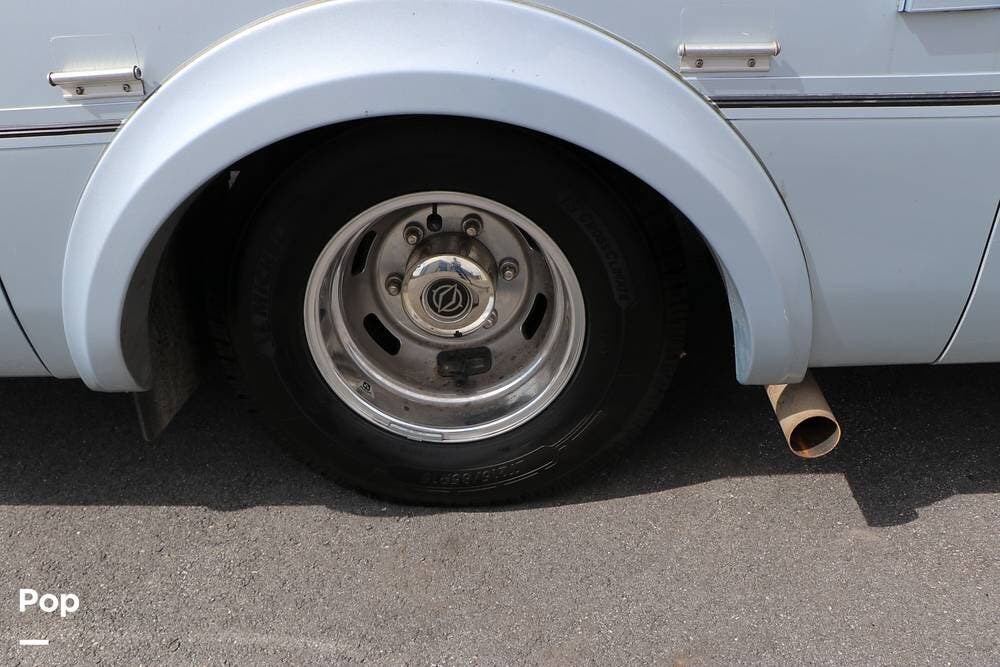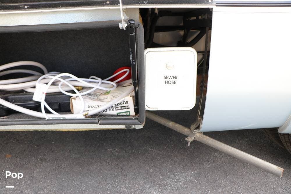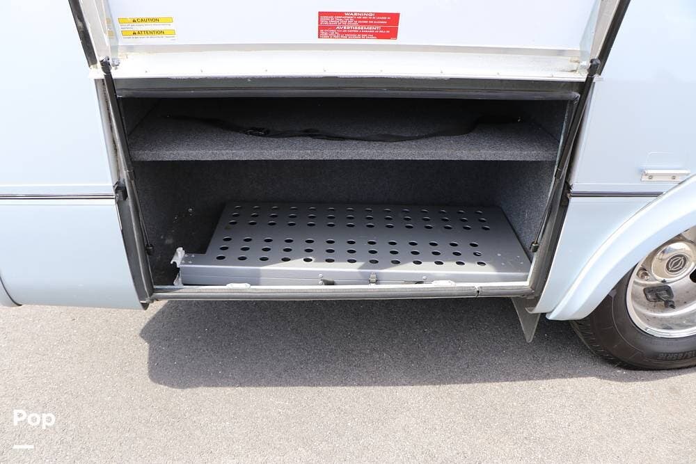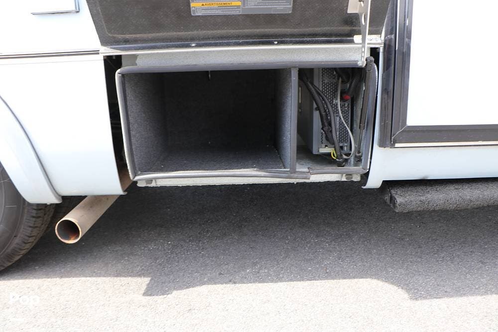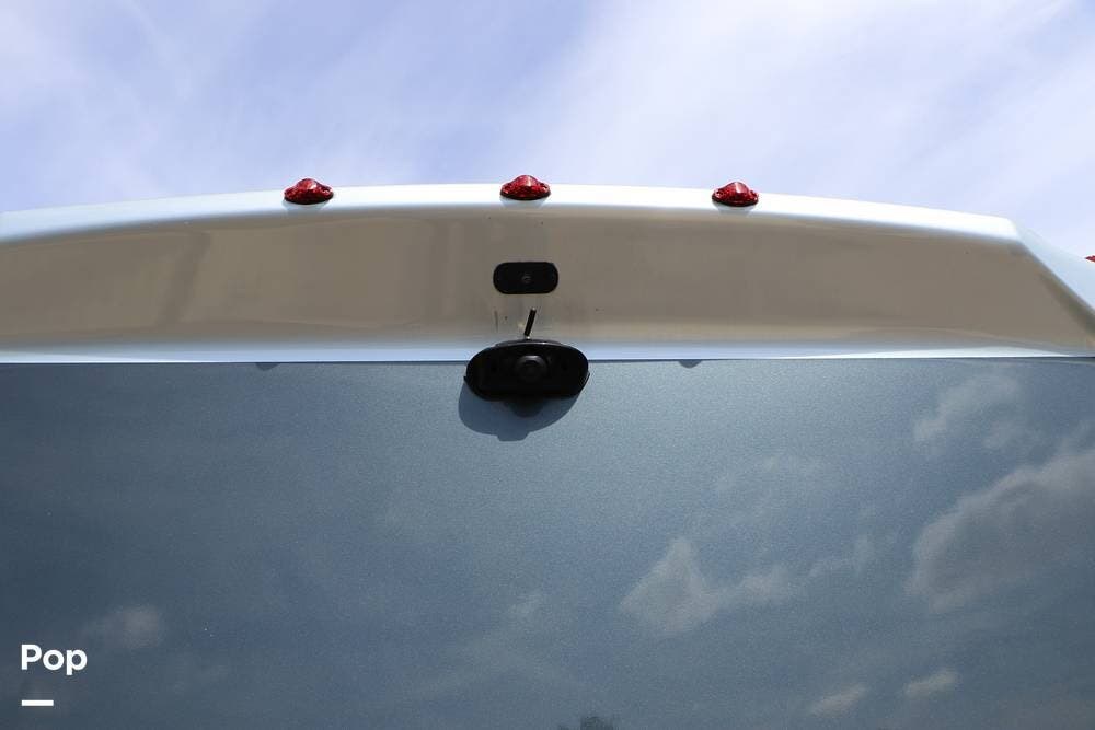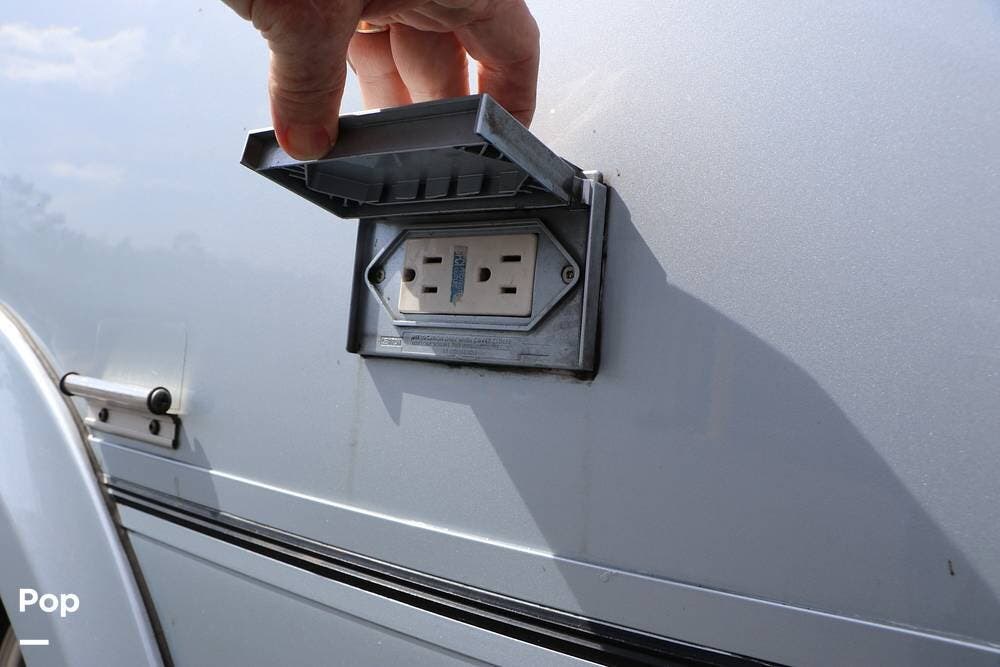 The exterior is enhanced by the power patio awning that quickly expands to create an outdoor living space. The unit has multiple exterior storage compartments, and all of the RV systems are clearly marked and easily accessible around the exterior of the RV.