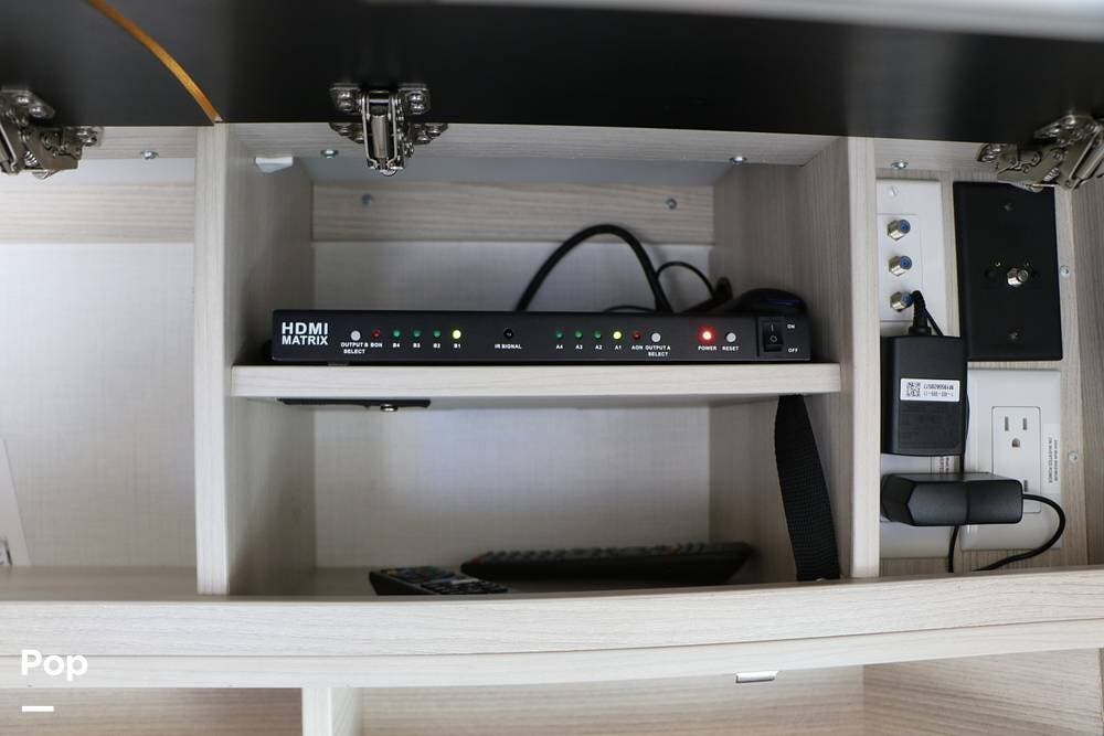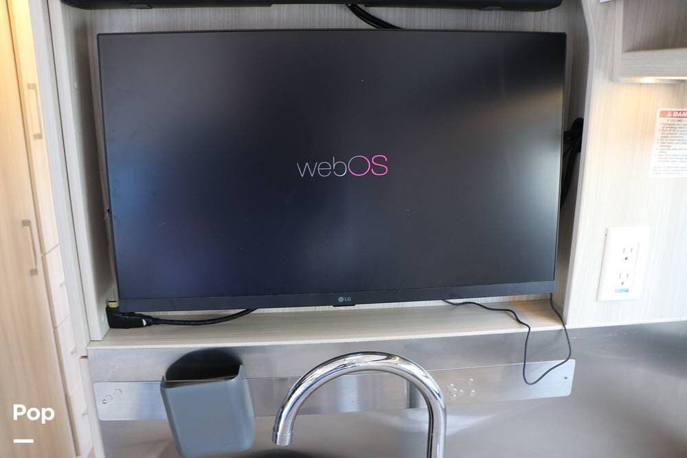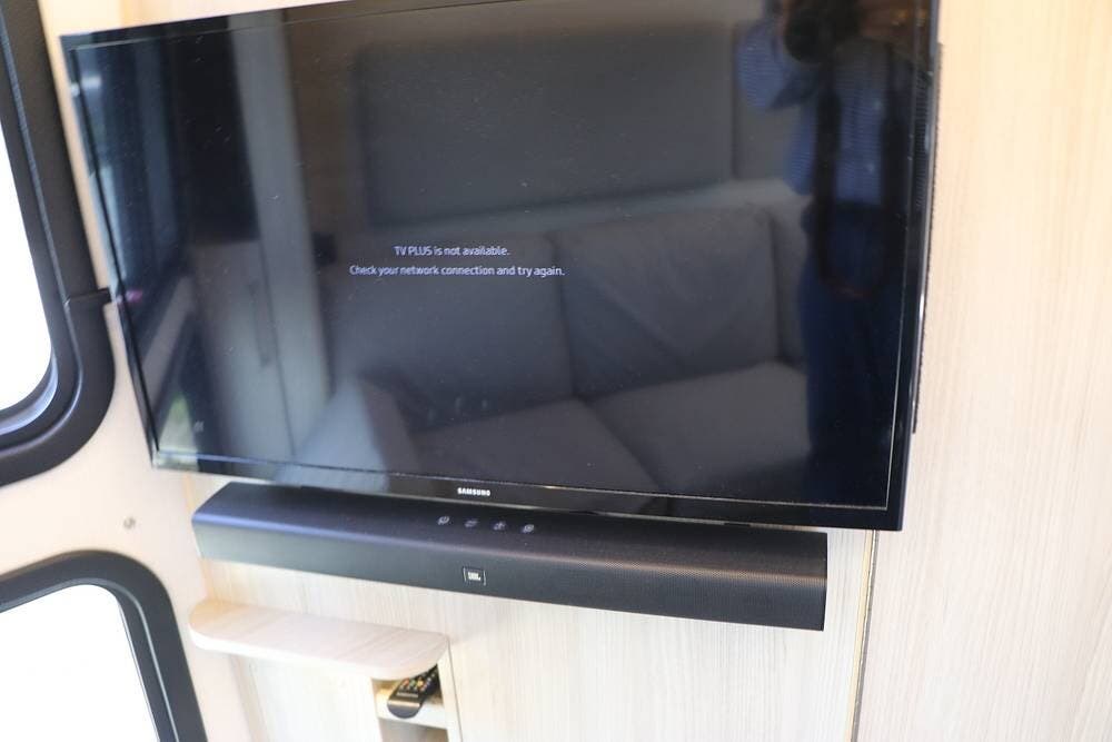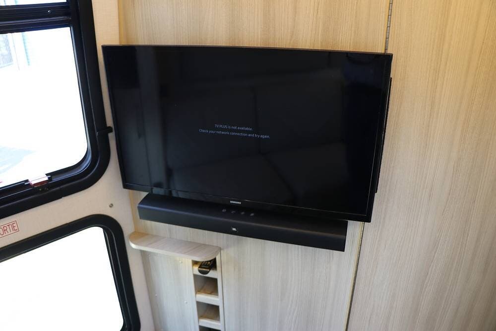 The large flat-screen Smart TV and stereo system provide entertainment options. There is a second Smart TV in the rear bedroom as well.