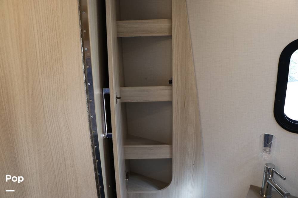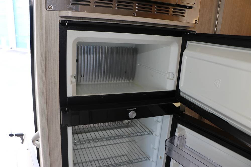 The comfortable layout accommodates two to three people, making it ideal for enjoying time on the road together. The Galley includes a 2-burner induction stove top, a convection microwave oven, a mid-size refrigerator/freezer, and a round kitchen sink with a matching cover to the solid surface countertop.