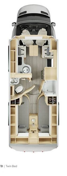 The 24TB features the popular split-rear twin bed arrangement that can be combined to make a king-sized bed, offering a lot of flexibility in sleeping arrangements.