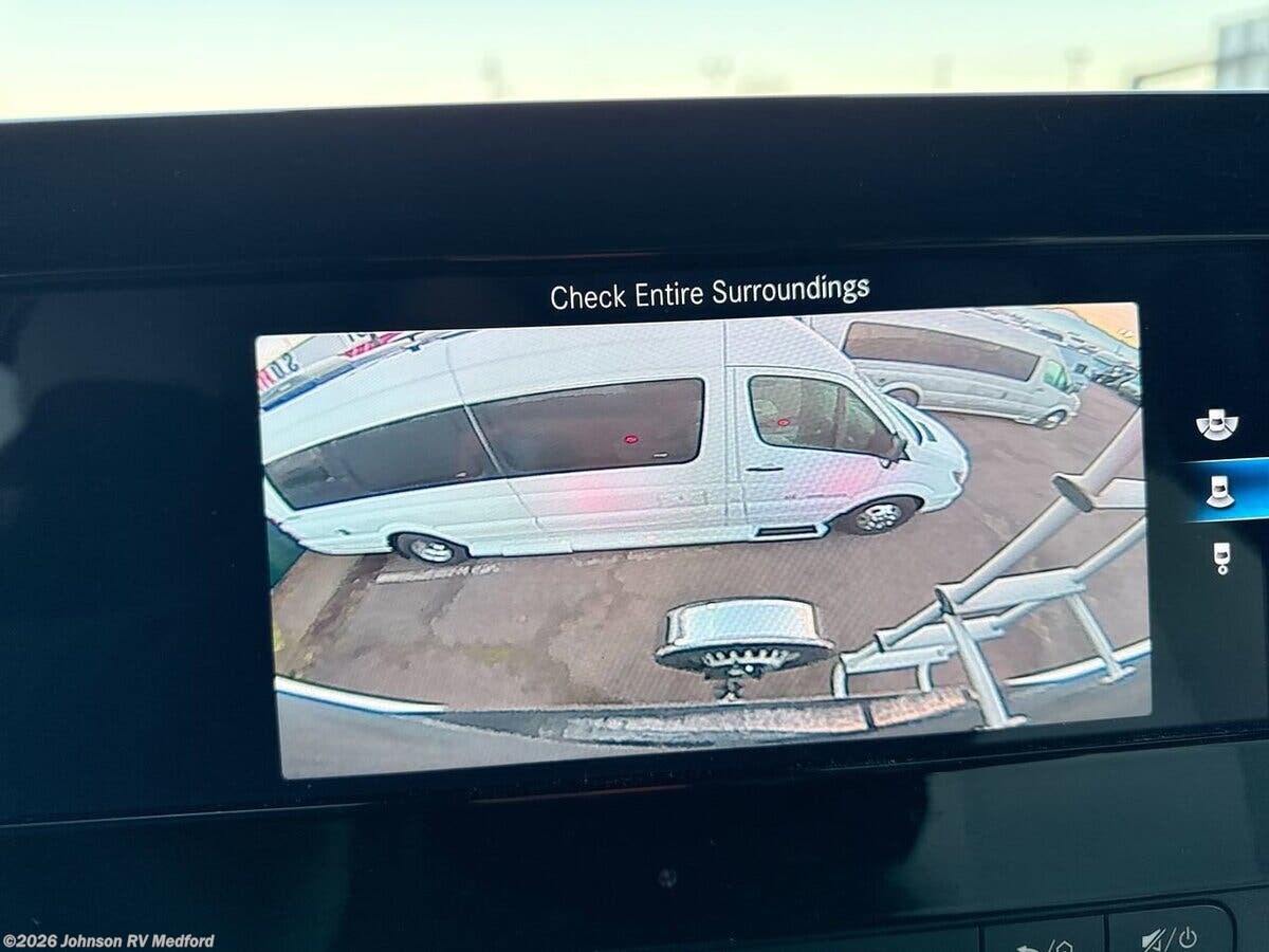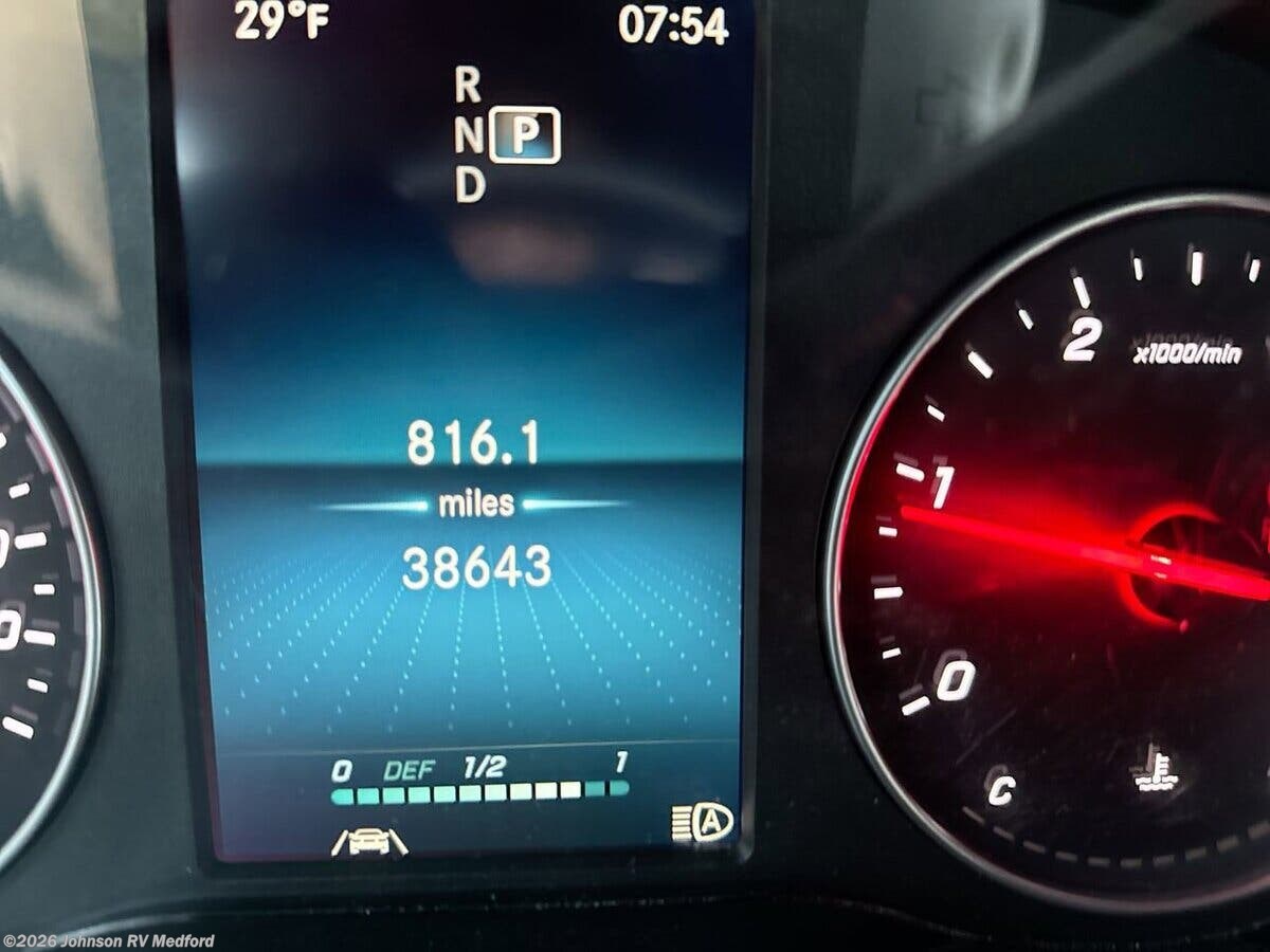 The 2020 Leisure Travel Vans Unity 24TB is a sophisticated and versatile Class C RV designed for those who seek both luxury and functionality on the road. Built on the reliable Mercedes-Benz Sprinter 3500 chassis, this vehicle combines the power of a 3.0L V6 Turbo Diesel engine with 188 horsepower and 325 lb-ft of torque, ensuring a smooth and efficient drive. The 7G-Tronic automatic transmission and electronic stability control further enhance the driving experience, while features like dual rear wheels and a rear hitch with a 7-pin connector add to its practicality. Safety and convenience are at the forefront of the Unity 24TB, with a suite of advanced features including LED headlamps with high beam assist, integrated fog lamps, and a cornering light function. The vehicle is equipped with rain-sensing wipers, active braking assist, collision prevention assist, lane-keeping assist, traffic sign assist, crosswind assist, and adaptive cruise control, ensuring peace of mind on every journey. The cab is designed for comfort and ease of use, featuring power door locks, keyless entry, and power heated Ultraleather seats with recline, swivel, and adjustable lumbar support. The MBUX 10.25-inch touchscreen multimedia system offers AM/FM, navigation, voice control, and smartphone integration, while a rearview camera and a leather-wrapped multi-function steering wheel enhance the driving experience. Inside, the Unity 24TB offers a luxurious living space with a legless power awning featuring LED lights and an awning wind sensor for auto-retraction. The interior boasts vinyl flooring, dimmable LED lighting, frameless tinted awning windows, day/night roller shades, and Ultraleather valances. Solid wood cabinets with curved soft-close upper doors and self-locking drawers provide ample storage. The dining area is equipped with a pullout pantry, solid surface Corian countertops, an undermount stainless steel sink with a cover, a stainless steel backsplash, a 3-way 6.7 cubic foot refrigerator, a convection microwave, and a thermal-controlled vent fan. An outdoor grill LP connection is also available for alfresco dining. For entertainment, the Unity 24TB includes a systems center, USB outlets, satellite dish pre-wiring, cable TV hookup, Winegard ConnecT 2.0 antenna, TV/radio/WiFi extender with 4G LTE, a smart TV, a soundbar, and a smart Blu-ray player. Sleeping arrangements are comfortable with a residential quality mattress and a bedroom smart TV, ensuring restful nights. The bathroom is well-appointed with a medicine cabinet featuring a towel bar, a vanity sink with a water pump switch, a shower skylight, and a retractable or glass shower door. Depending on the model, it includes either a ceramic foot flush sprayer toilet or a ceramic macerator toilet, along with a power vent fan. Mechanically, the Unity 24TB is equipped with a battery disconnect switch, two 6v AGM coach batteries, a 30-foot power cord, an 80-amp power converter charger, a 2000w pure sine inverter, 120v GFI receptacles, a surge protector, an LP tank electric shutoff, a 16k ducted furnace, a ducted 15k AC heat pump, a water filtration system, a Truma AquaGo Comfort Plus water heater, a water heater bypass valve, a winterization kit, a black tank flush, a contained sewer hose, and an outdoor shower. The coach is built with vacuum-bonded construction, a steel-framed floor, aluminum frame sides and roof, a fiberglass exterior, a domed roof with FRP Flexroof, a slideout topper awning, and a pass-through storage compartment with cargo door top hinge gas struts, ensuring durability and ample storage space for all your travel needs. ??