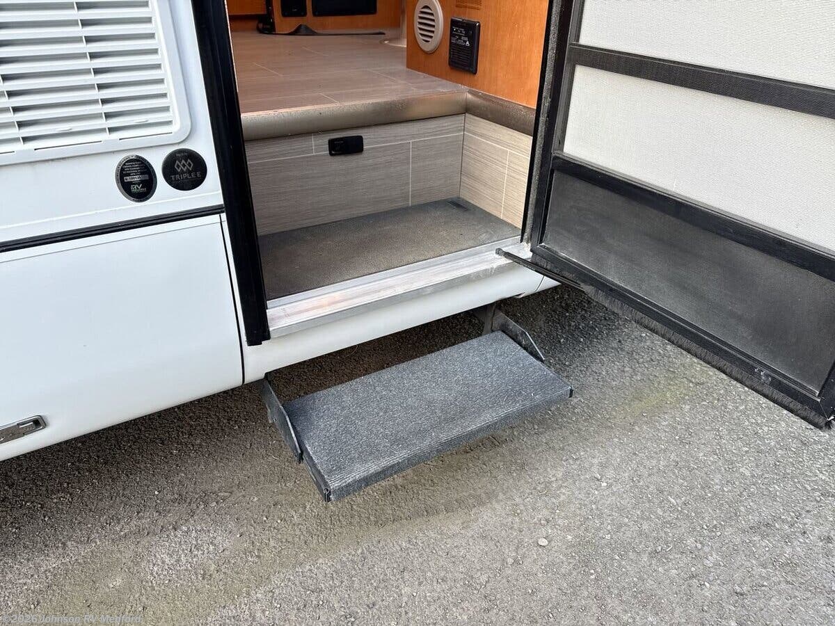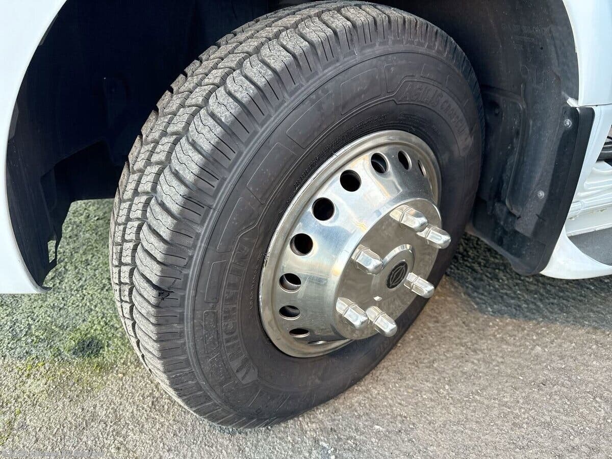 Features Include: 220-Amp Alternator, Dual Rear Wheels, Wheel Simulators, Integrated Fog Lamps, Lane Keeping Assist, Traffic Sign Assist, Crosswind Assist, Power Door Locks, Keyless Entry, Rear View Camera, Cab Privacy Drape, Living Spaces, Patio Light, Vinyl Flooring, Solid Wood Cabinets, Pullout Pantry, Sink Cover, Cooktop Cover, Convection Microwave, Systems Center, USB Outlets, Cable TV Hookup, 4GLTE, Bedroom Smart TV, Bathroom, Shower Skylight, FX, CB), IB, TB), 30-foot Power Cord, 120v GFI Receptacles, Surge Protector, 16k Ducted Furnace, Winterization Kit, Black Tank Flush, Contained Sewer Hose, Steel Framed Floor, Fiberglass Exterior