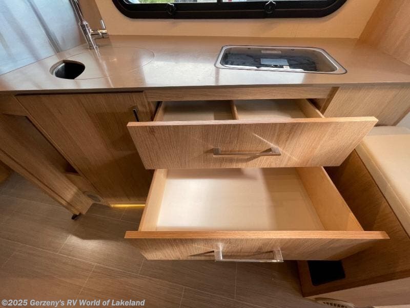 Change your expectations for travel with the Leisure Travel Wonder Class B+ diesel motorhome! The Wonder might be compact, but it delivers unimaginable comfort and convenience with its space-saving features and innovative accommodations. Experience wonder and excitement each and every time you step foot into the stunning modern interior. There is room for all of your travel essentials with the curved soft-close cabinets, the full-extension self-locking drawers, and the large bathroom storage. The tile-look vinyl flooring creates a beautiful and functional base for all of your travels, and the Bluetooth sound bar with Blu-Ray player will create a spectacular home entertainment system for you to enjoy while on the road. The Ford SYNC®3 radio with navigation and Bluetooth will also create an enjoyable cab experience as you navigate your way to the campsite, so get out there and experience the wonder of the Wonder!