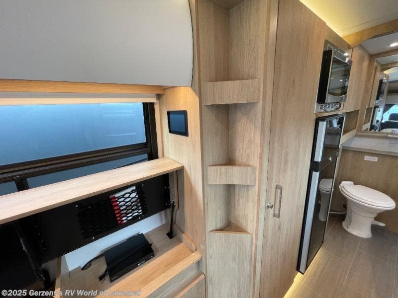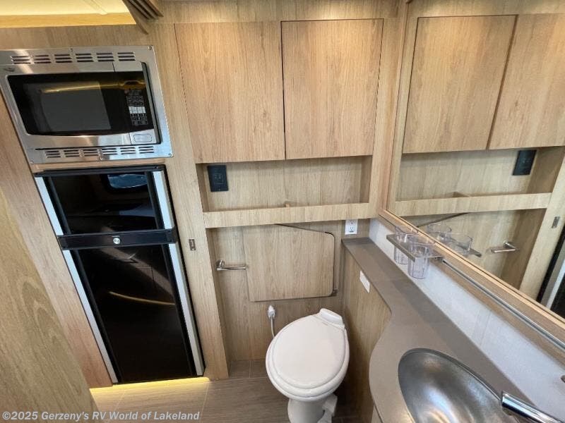 It's a wonder that you haven't already included this Wonder Class B+ diesel motorhome in your summer travel plans! The full-size bathroom is a great way to start the day, and the large medicine cabinet allows you to bring along all of your important toiletries. The convection microwave and two-door stainless-look refrigerator have been hidden behind clean and continuous lines so that they don't look bulky within this modern coach. You will also find that this functional coach allows you to keep the interior open and spacious throughout the day with the Murphy bed hidden away.