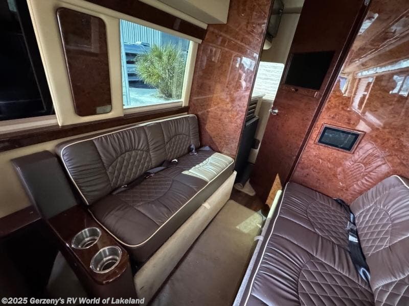 When you are ready to take off to a tailgate party, a soccer tournament, or across country, this Daycruiser will provide luxury and comfort just the way you like it. You can even load up the family or your group of friends thanks to the eight seatbelts. Just imagine everyone watching the 28" LED Smart TV, relaxing on the Maybach style sofa and chairs, enjoying the wireless head phone system, and the cook heating up food in the overhead 110v microwave. You are sure to appreciate the rear toilet room providing an added convenience and the rear wall entry door as well. Take a look today!