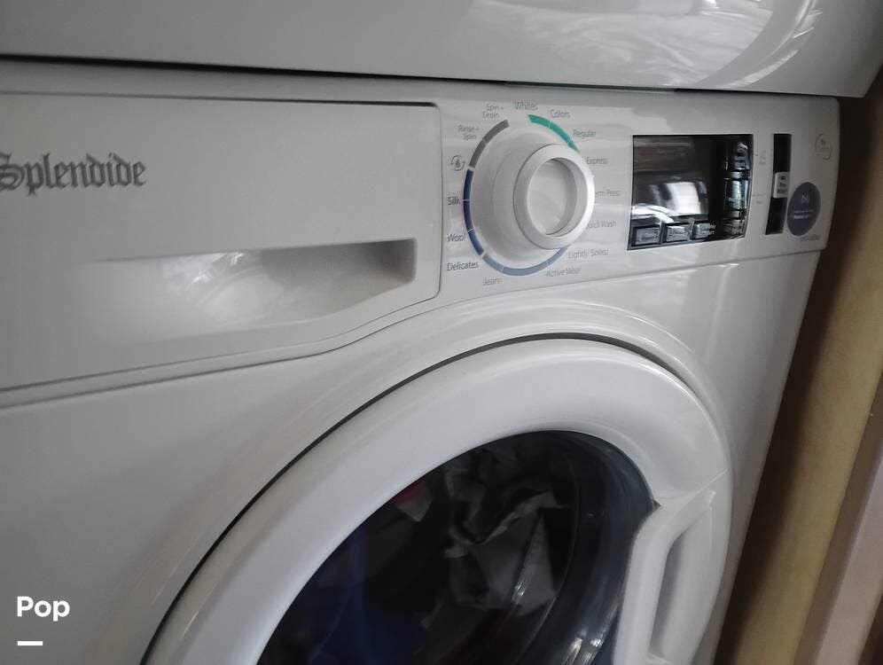 Inside are a washer and dryer, an on-demand water heater, a convection oven, and three televisions.