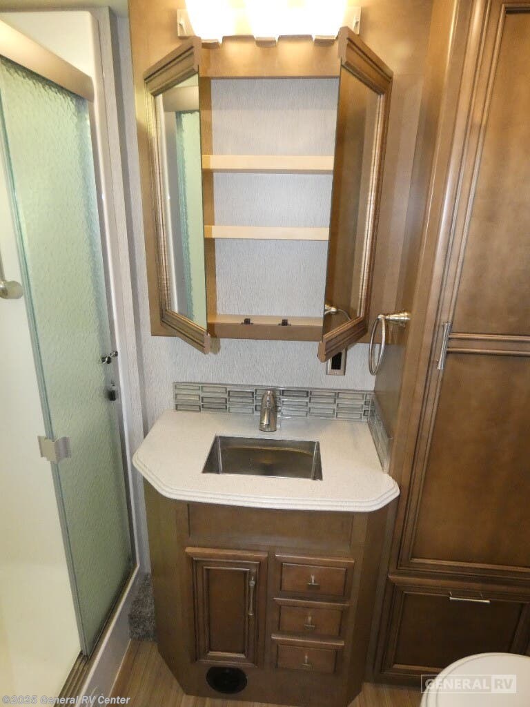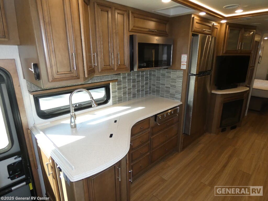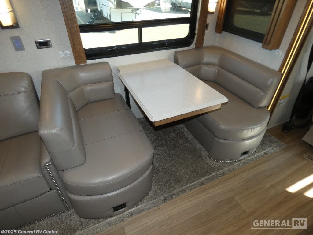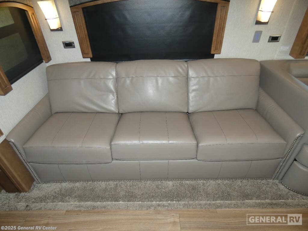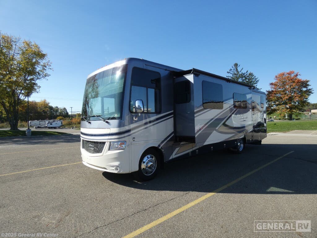 Experience the pinnacle of luxury and comfort with the 2020 Newmar Canyon Star 3710. This exceptional motorhome is built on a robust Ford F-53 chassis and powered by a Triton V10 engine, delivering an impressive 320 horsepower and 457 lb-ft of torque. Its sleek design spans 37 feet, offering ample space for you and your loved ones to explore the open road in style. The Canyon Star 3710 is equipped with two expansive slides, creating a roomy interior that can comfortably sleep up to five. Inside, you'll find a beautifully appointed living area featuring an 87-inch jack-knife sofa and a cozy dinette, perfect for relaxing or entertaining. The well-equipped kitchen boasts a three-burner cooktop and a 10 cu ft Norcold refrigerator, making meal preparation a breeze. The spacious king-sized bed in the master suite ensures restful nights, while the standard shower provides a refreshing start to your day. With a 75-gallon fresh water capacity and a washer/dryer prep, this RV is designed for extended adventures. For entertainment, enjoy the LED TVs in both the living room and bedroom. The power awning with a weather shield and LED lights extends your living space to the outdoors, providing the perfect setting for evenings under the stars. With a generous 30,000 lb tow capacity and an Onan 7000 generator, the Canyon Star 3710 is ready for any journey. Discover the perfect blend of luxury and functionality at your nearest General RV dealership.