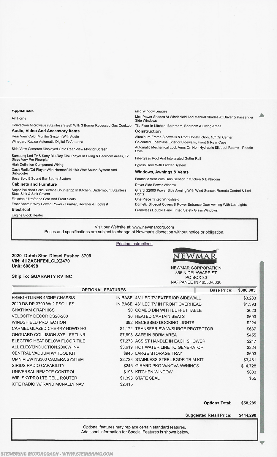 Request More Info on this 2020 Newmar Dutch Star 3709 Offered for sale by Steinbring Motorcoach