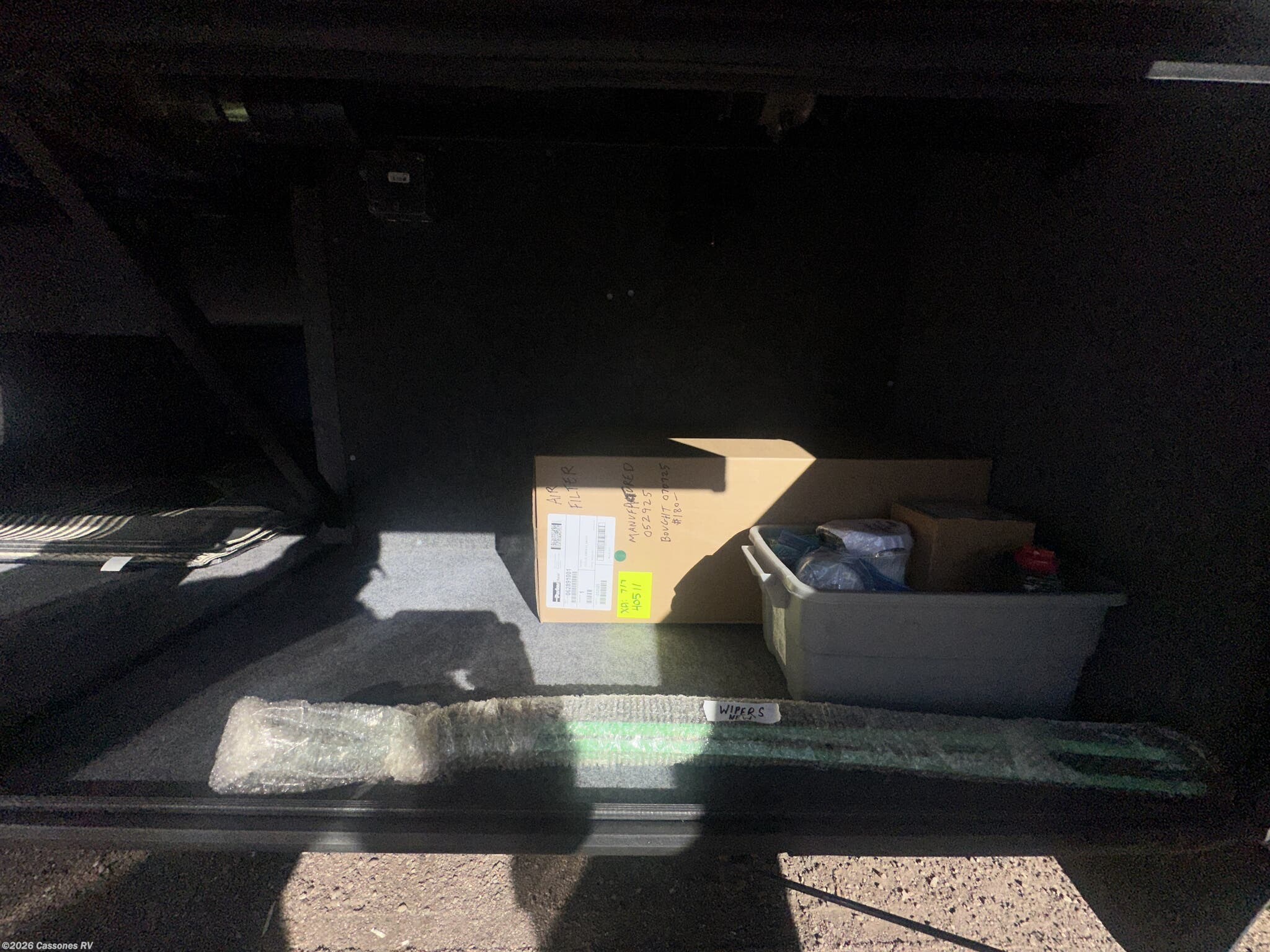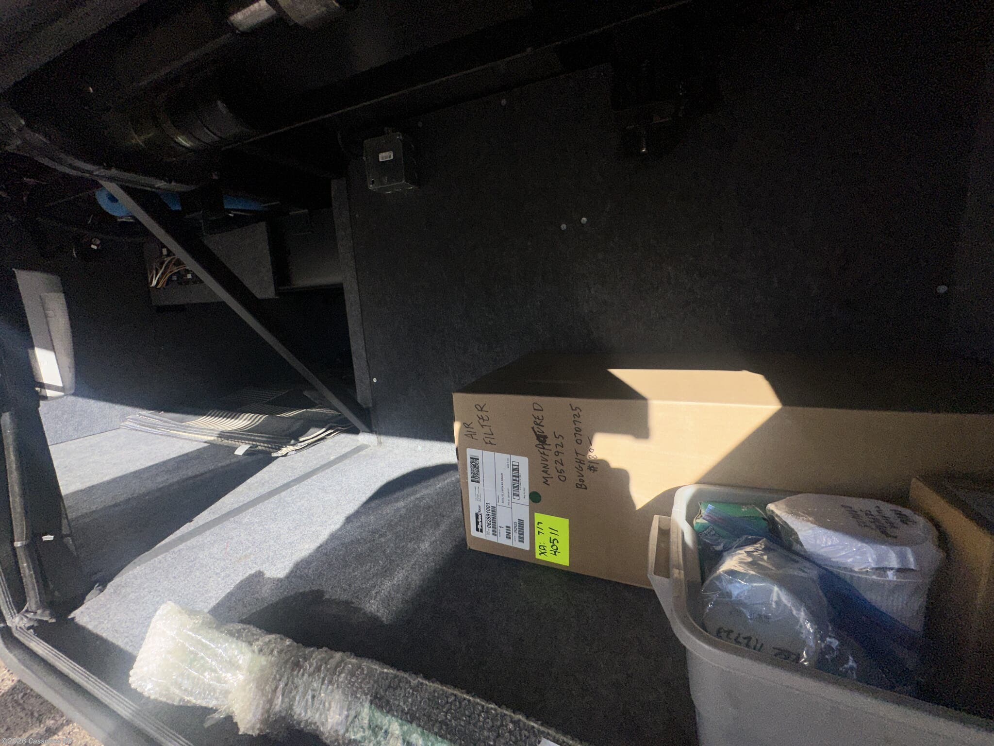 Exterior: Full-body paint with clearcoat finish, power awnings, basement storage with pass-through trays