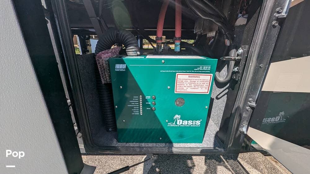 There are 3 Slide-Outs that increase the overall luxurious living space that is loaded with options to include a dishwasher, washer and dryer and Residential Refrigerator and freezer for those long trips. The Oasis Hydronic Wall and floor heating system provides instant hot water throughout the Coach.