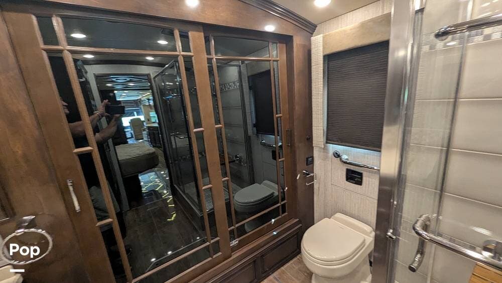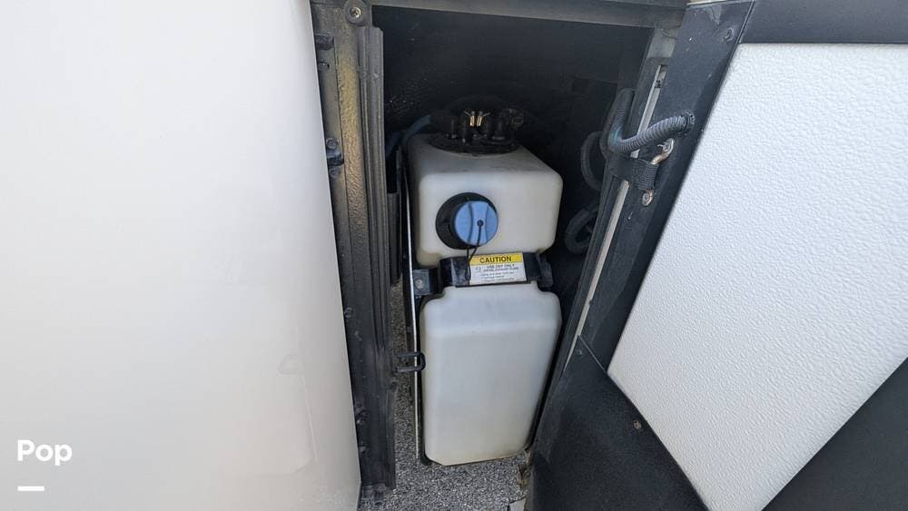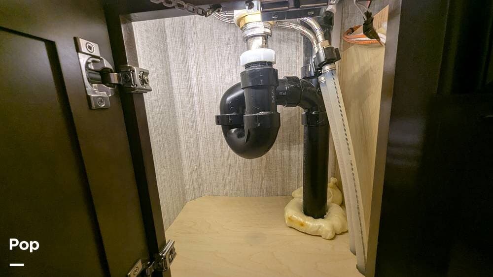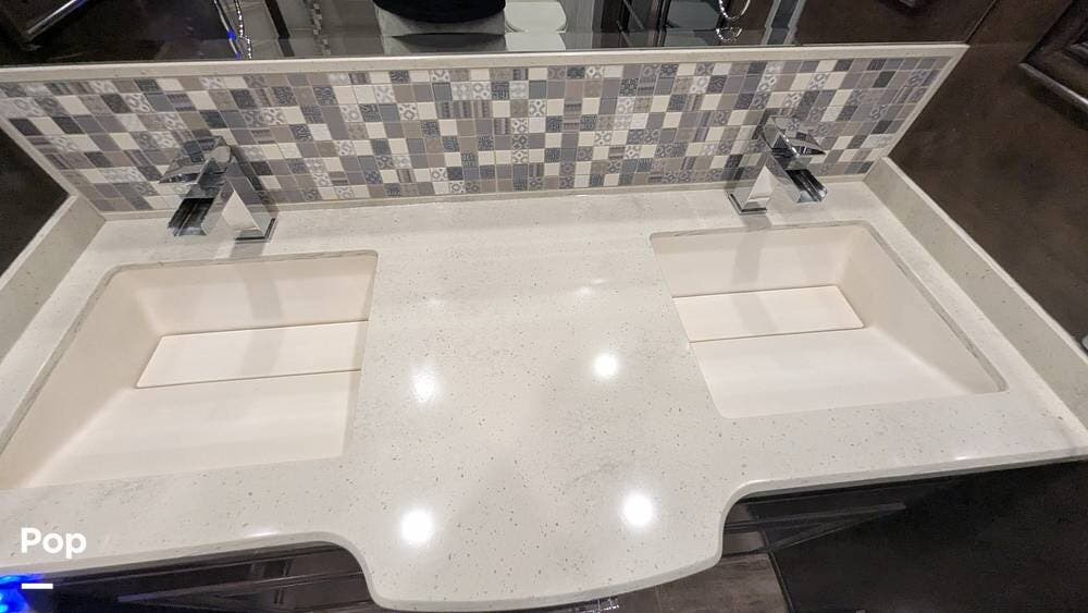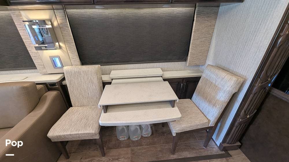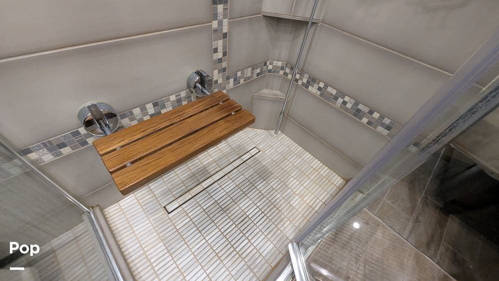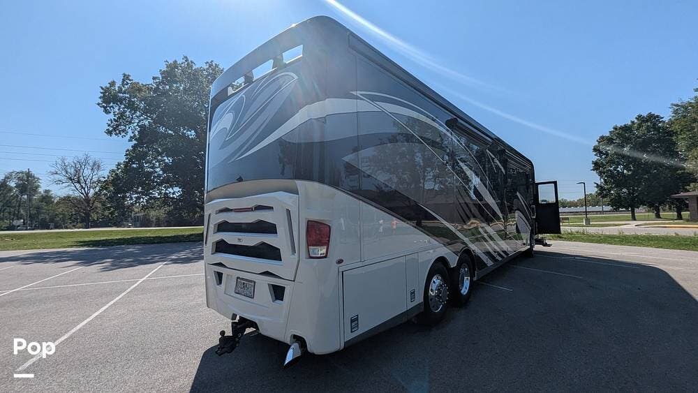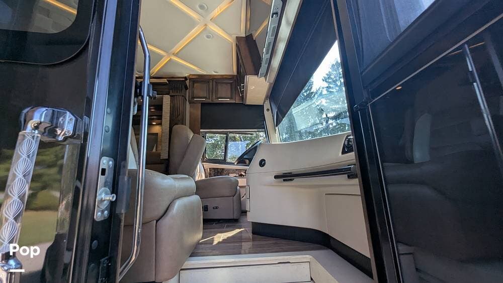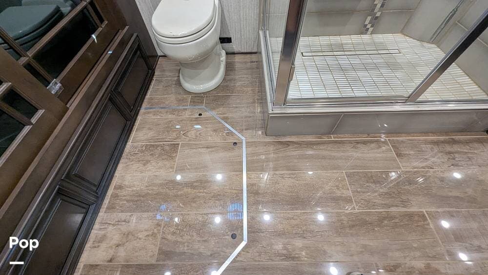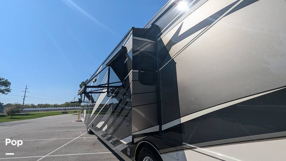 All of the convenience features are in place, along with a powered electrical cord reel and slide-out storage trays in the basement. The TV in the living room also retracts into the gorgeous wood cabinetry when not in use. There are also multiple TV's and access to entertainment systems, including an outside TV for tailgating.