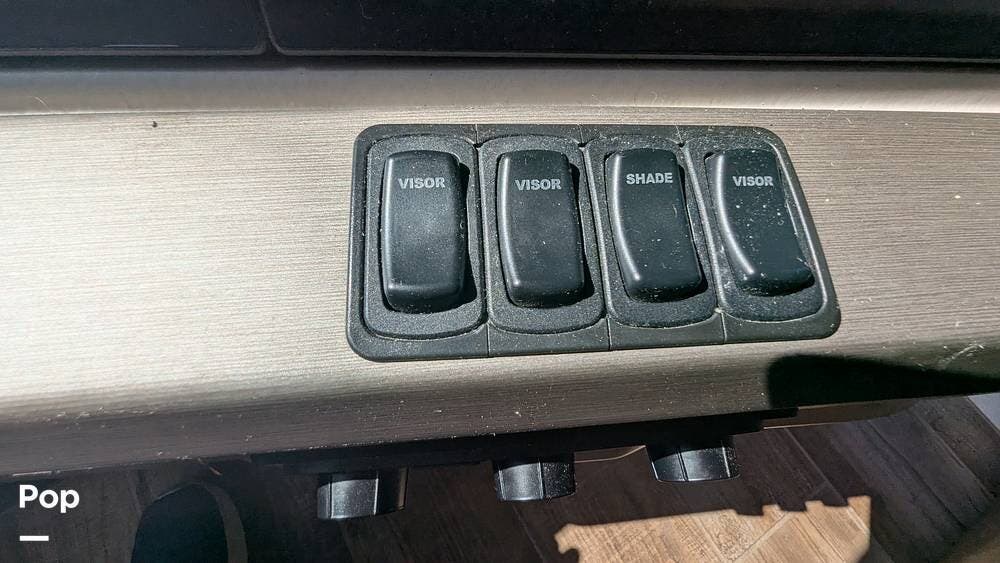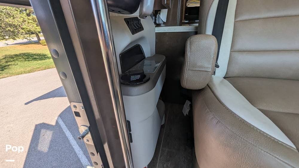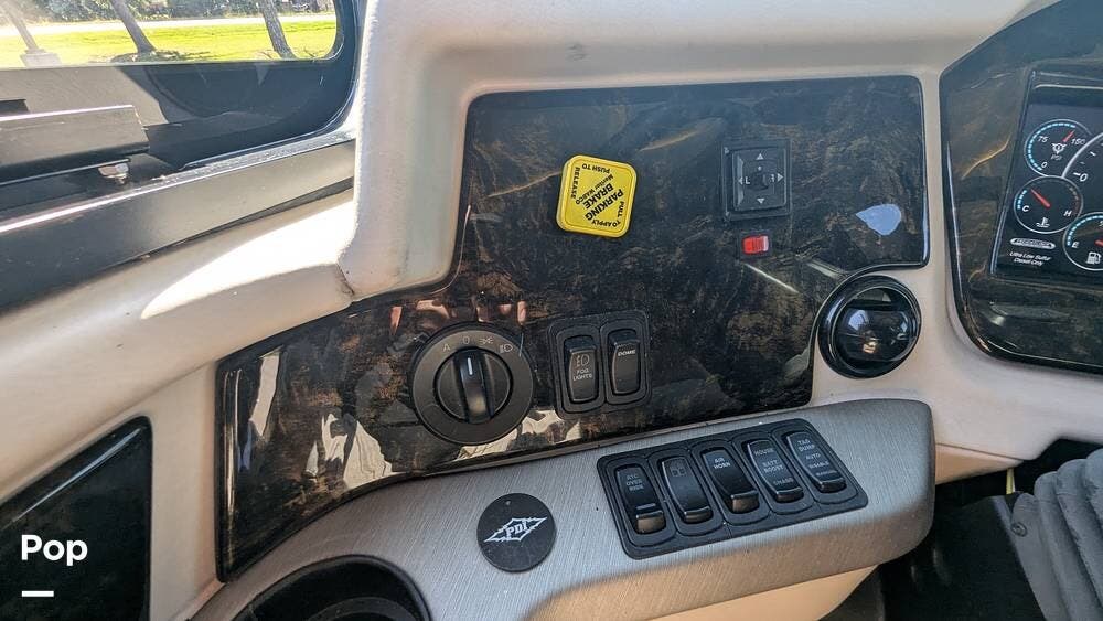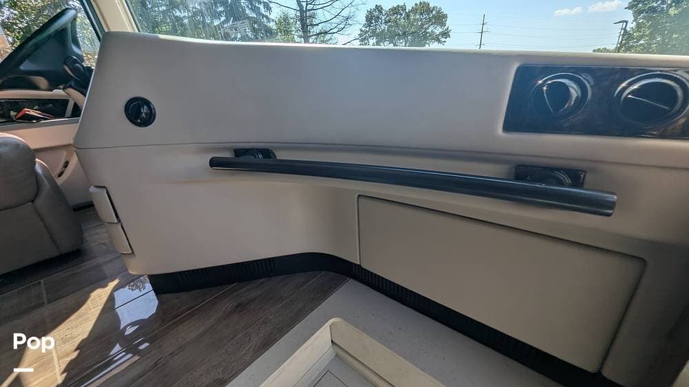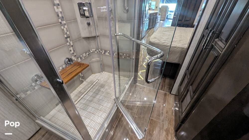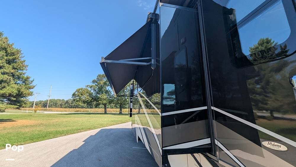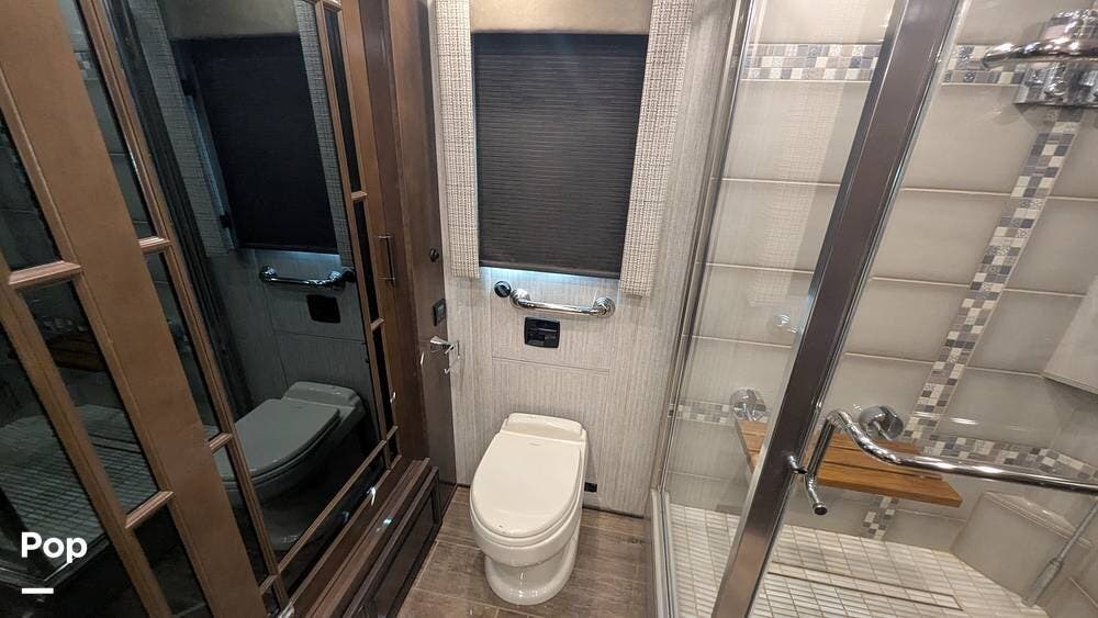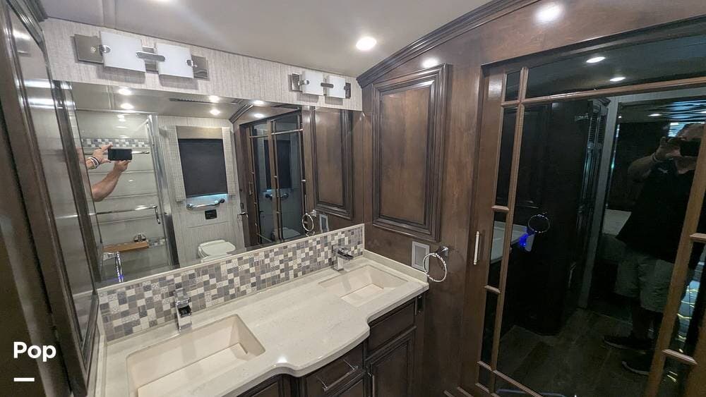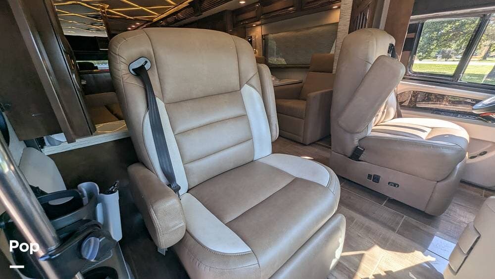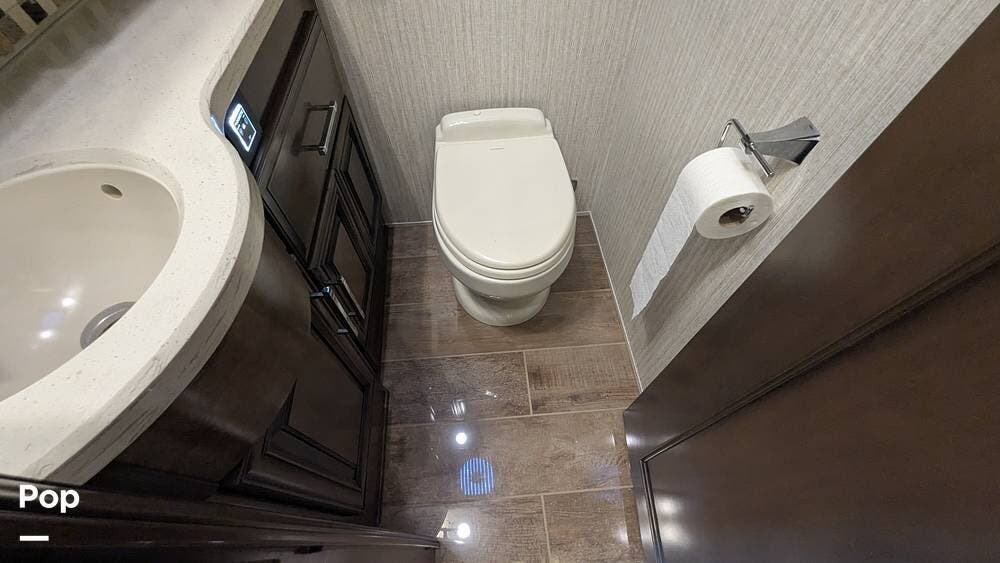 All of the convenience features are in place, along with a powered electrical cord reel and slide-out storage trays in the basement. The TV in the living room also retracts into the gorgeous wood cabinetry when not in use. There are also multiple TV's and access to entertainment systems, including an outside TV for tailgating.