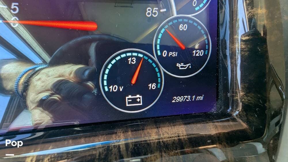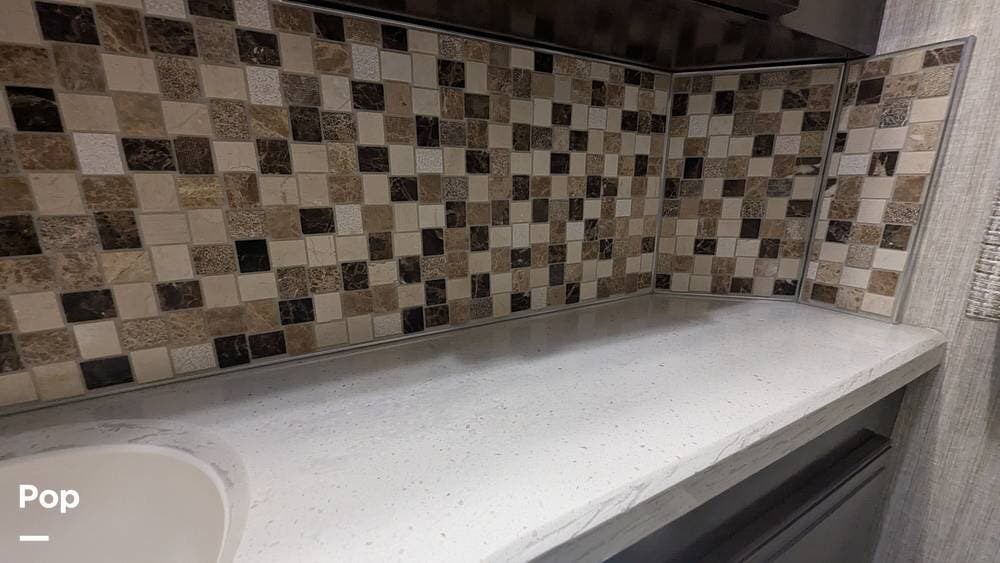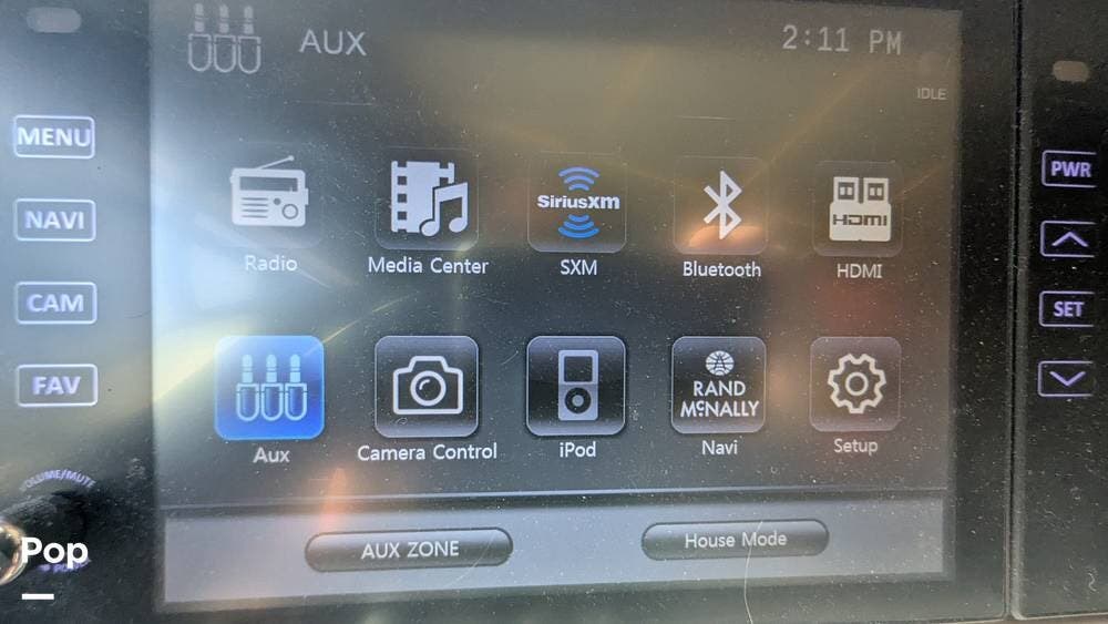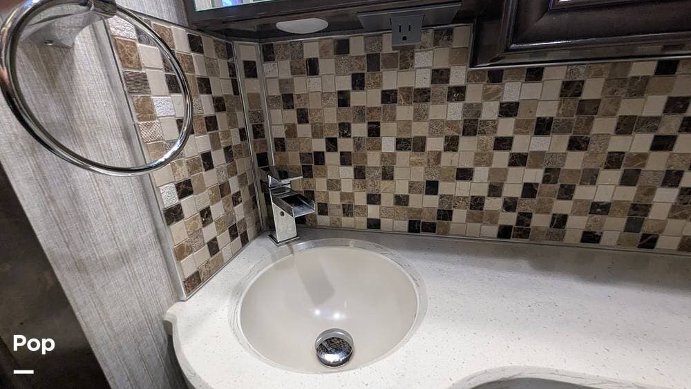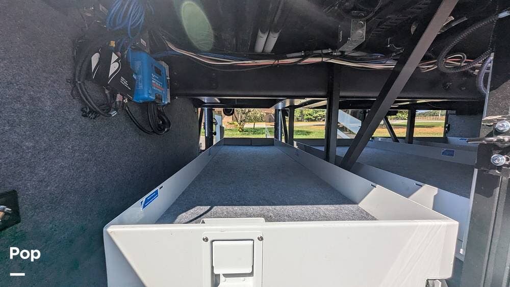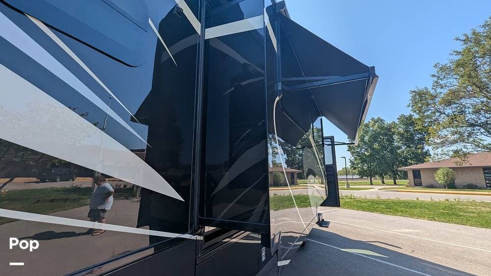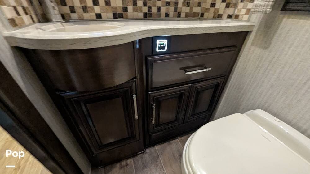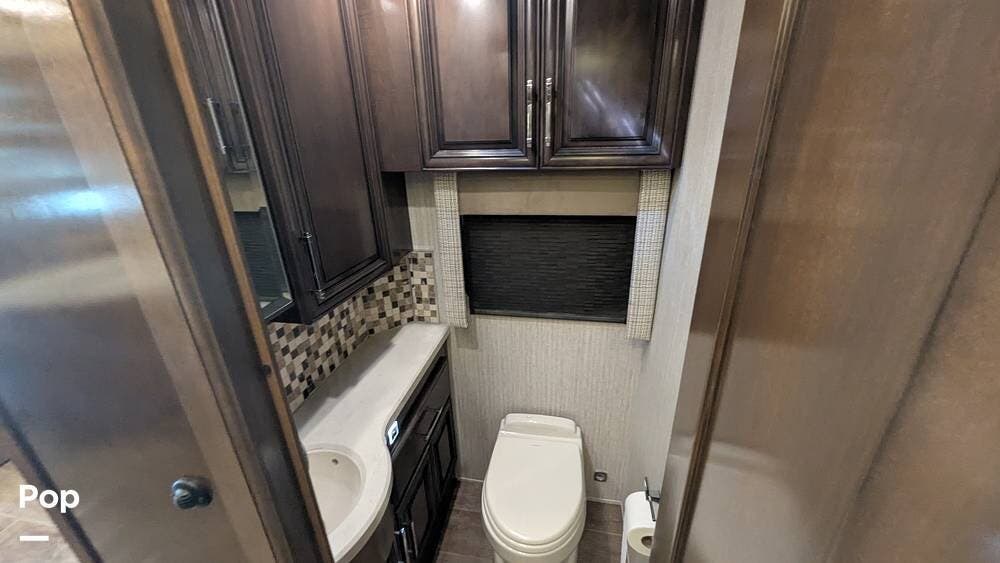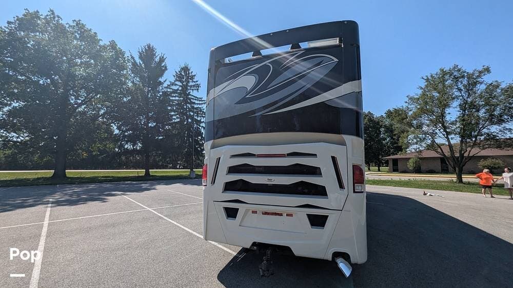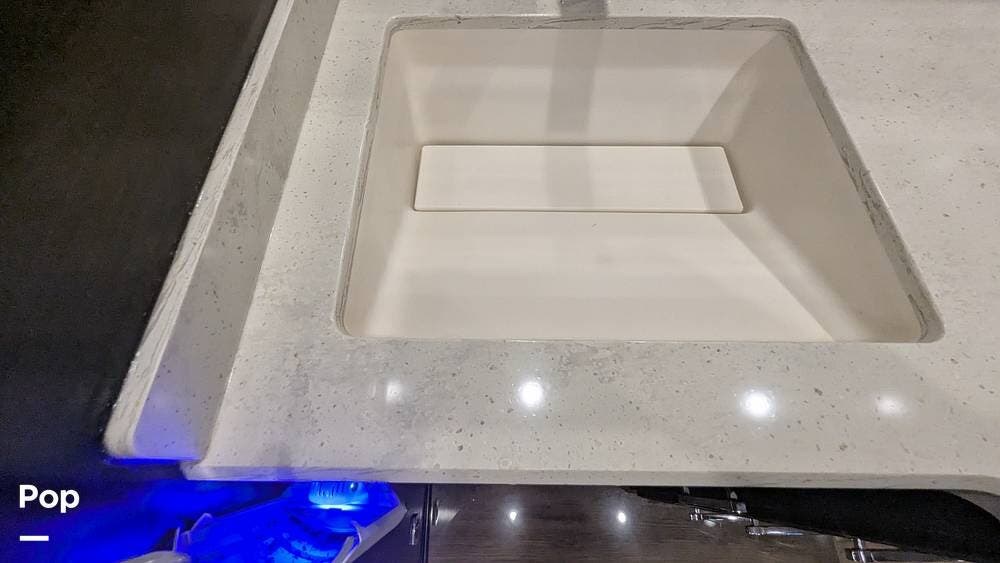 All of the convenience features are in place, along with a powered electrical cord reel and slide-out storage trays in the basement. The TV in the living room also retracts into the gorgeous wood cabinetry when not in use. There are also multiple TV's and access to entertainment systems, including an outside TV for tailgating.