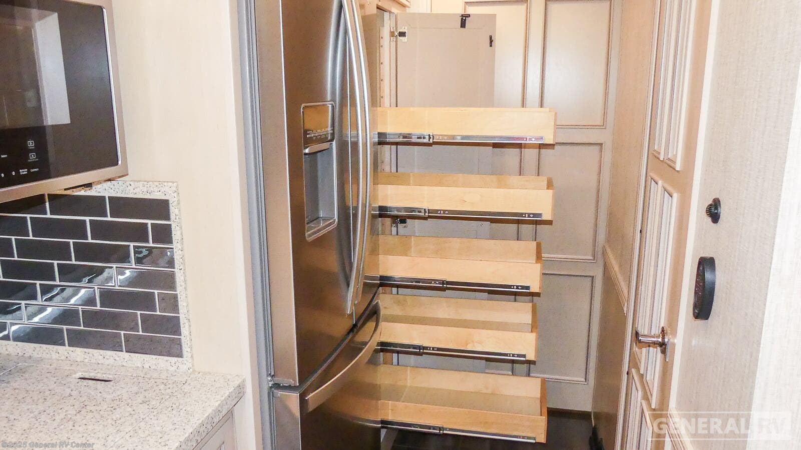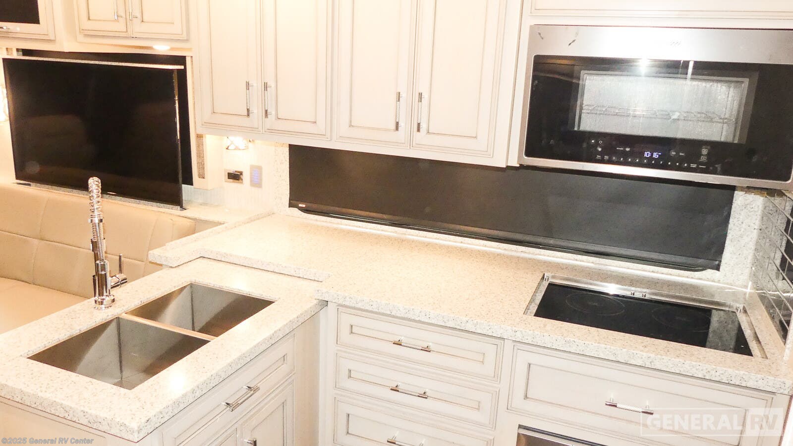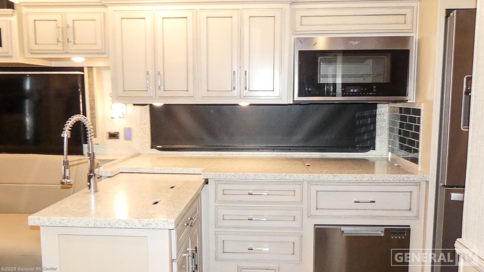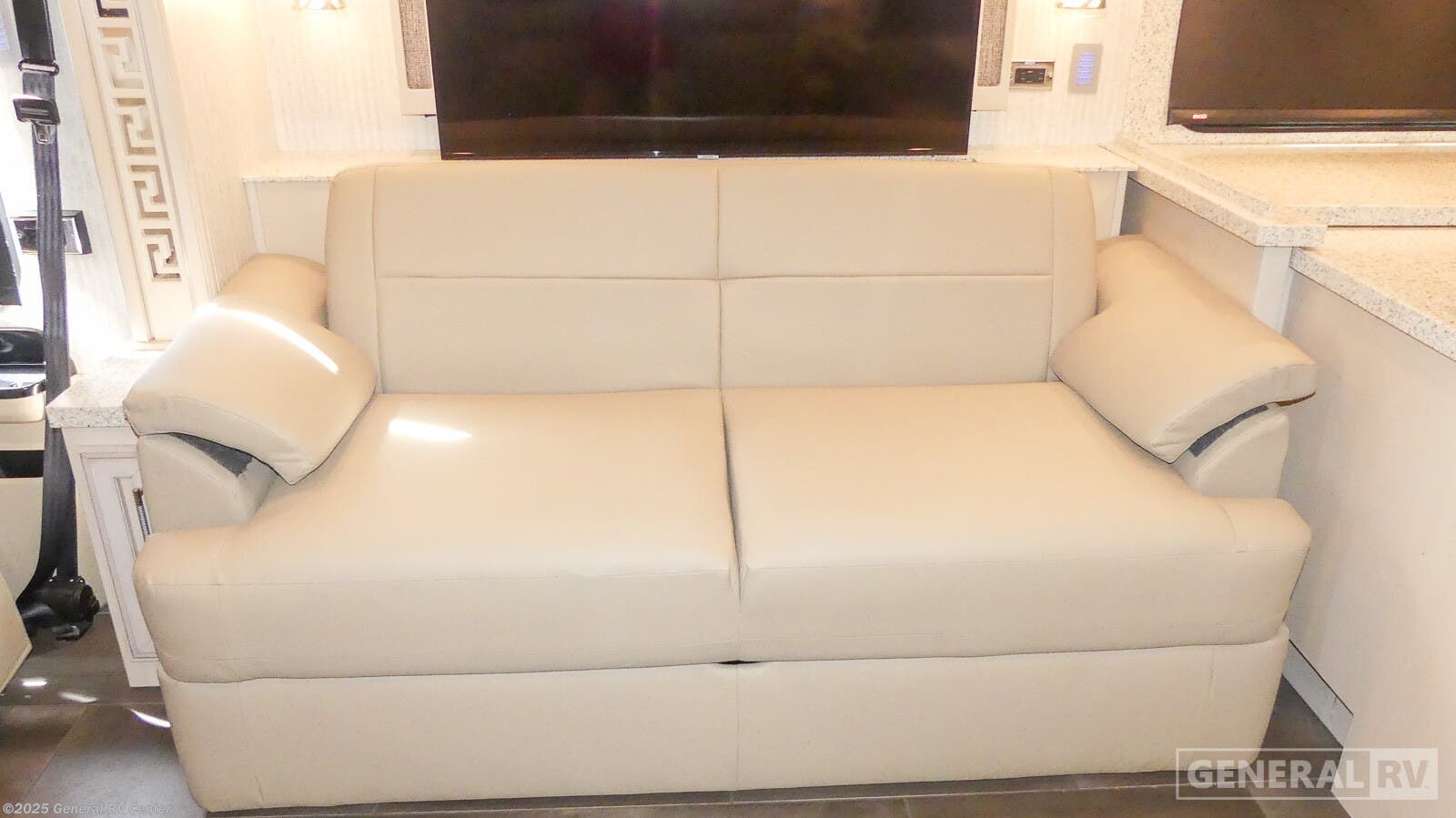 Newmar Ventana class A diesel motorhome 3717 highlights: Two Sofas Booth Dinette L-Shaped Kitchen Two Pantries King Bed Four Slides Searching for a coach that will provide sleeping space for the grandkids when they get a chance to be with you? The 74" hide-a-bed sofa and the jack knife sofa, plus the booth dinette give you that feature. You can also use the two ottomans and driver/passenger seats to offer more seating when relaxing inside before bedtime. You might even like to make several meals ahead of time to store the leftovers in the refrigerator. And the two pantries will give you more room for your dry goods. The mid-coach full bathroom will allow everyone to shower and stay refreshed for shopping in town or hiking the campground trails. You will find other features to enjoy such as USB chargers at the dinette and nightstands, and a molded silverware divider tray for the organizer in the family, plus add a few options such a washer and dryer to keep the linens clean throughout your trip, powered theater seating for movie night, and/or a larger refrigerator. Built on a Freightliner tag axle chassis with a STAR foundation which is framed 16 inches on the center and is covered by a BriteTEK roof with walkable decking and integrated gutter rail, you will appreciate the quality from the very beginning. You may decide to choose a Spartan tag axle chassis offered on several units which will change the specifications, yet you will still get all the standard features you desire. Inside each Ventana you will find redesigned furniture and cabinet doors, soft closed drawers with new hardware, and polished solid surface countertops in the kitchen, bathroom and bedroom. Make no compromises, start traveling in a Ventana class A diesel coach by Newmar today, and go beyond what's expected!
