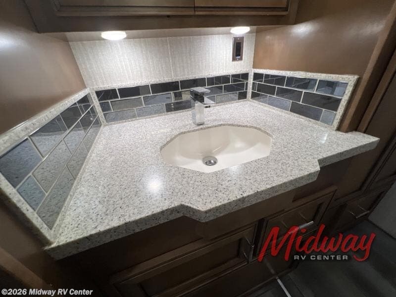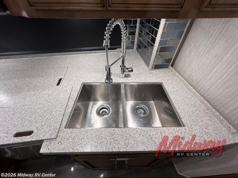 Built on a Freightliner tag axle chassis with a STAR foundation which is framed 16 inches on the center and is covered by a BriteTEK roof with walkable decking and integrated gutter rail, you will appreciate the quality from the very beginning. You may decide to choose a Spartan tag axle chassis offered on several units which will change the specifications, yet you will still get all the standard features you desire. Inside each Ventana you will find redesigned furniture and cabinet doors, soft closed drawers with new hardware, and polished solid surface countertops in the kitchen, bathroom and bedroom. Make no compromises, start traveling in a Ventana class A diesel coach by Newmar today, and go beyond what's expected!