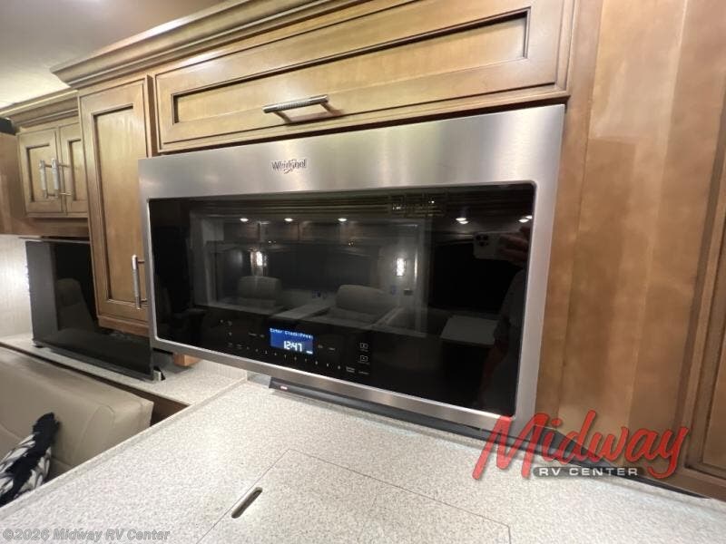 You can have it all with this coach which offers a king bed in the master suite with a full bathroom including a place to add an optional washer/dryer if you like to keep everything clean while away. You will find plenty of wardrobe space as well, plus USB chargers in the nightstands. The half bath adds a convenience you didn't even know you needed until your guests have arrived. The kitchen allows you to make full meals, and the pull-out cabinet and appliance garage allow you to stow away items when not in use. You can choose to relax on the driver or passenger seats with footrests, one of the two sofas and the booth dinette unless you want to sit outside on your camp chairs.