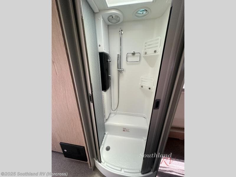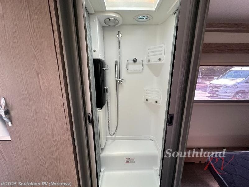 The AVIA travel trailer features Ohio Amish quality comforts inside with plenty of great views, and outside you will enjoy your favorite sounds from the premium speakers, LED amber porch lights at dusk, and a 16' cassette awning whenever you are hanging out taking in the great outdoors! The lighted entry handle with motion sensor guides you inside after an evening of campfire and s'mores. The dry bath awaits so you can easily get cleaned up to enjoy the rest of your evening inside lounging watching television on the 24" flat-screen TV, or take in a bit of constellation and star searching through the stargazer window overhead. After waking from a great night's rest, the kitchen amenities are readily available for creating a yummy breakfast feast as you prepare for another full day of adventure and fun!